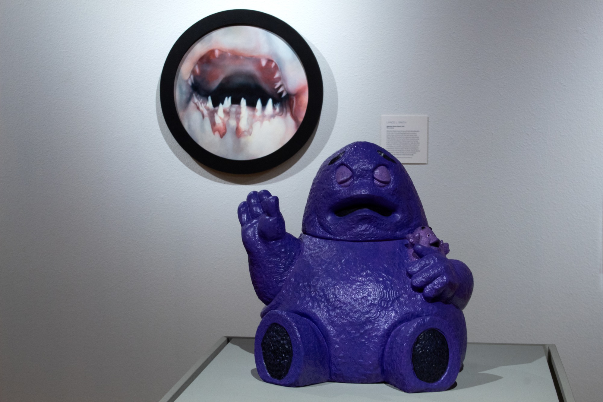 Malevolent Waters is part of Lance Smith’s Moral Monsters series, a set of nine paintings depicting the mouths of snakes, dogs, and sharks with their teeth bared. Smith takes the title of the series from a statement made during a 1963 television interview by the African-American writer and activist James Baldwin. Baldwin says he is “terrified by the moral apathy” of white people who “really don’t think I’m human.” He continues: “I base this on their conduct, not on what they say, and this means that they have become, in themselves, moral monsters.” Smith moves this idea of violent conduct into the figures of symbolic animals, placing each viewer, no matter who they are, in an immediate relationship with an irrational, hostile force. (DKS)