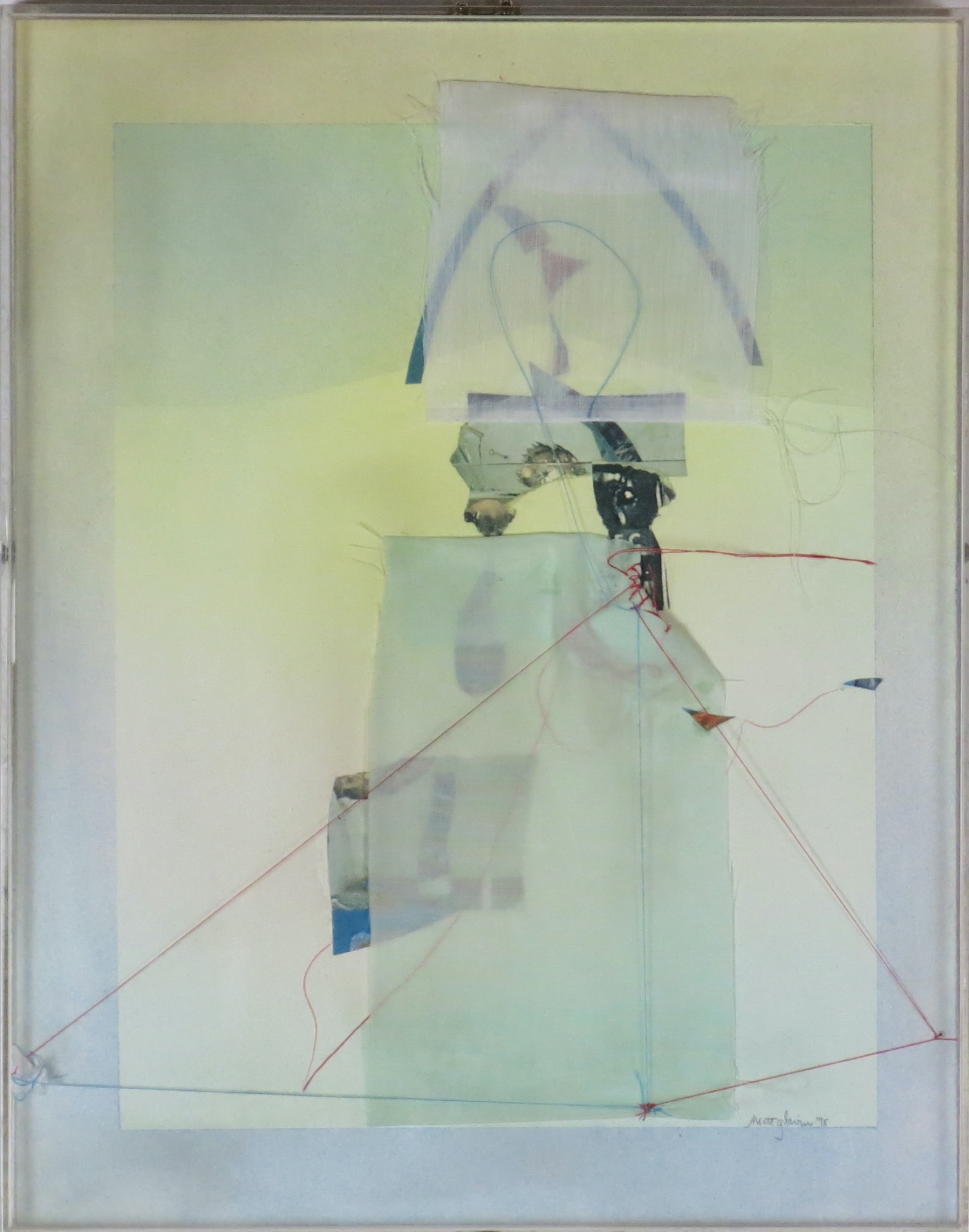 - Mixed media collage, fabric, thread, paper