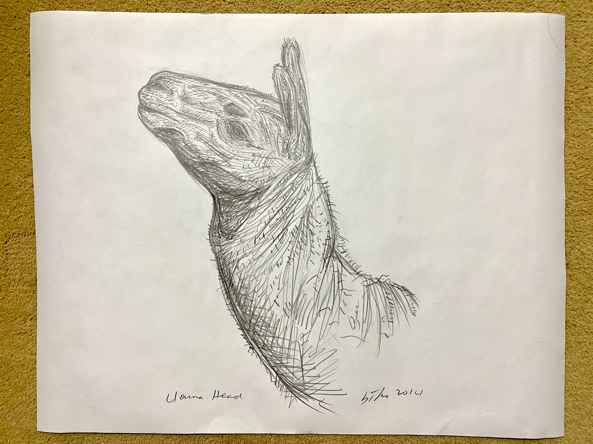 The llama motif represents Zappos, the online company that was transforming downtown Las Vegas while Depio was creating most of the work in this exhibition. He relates it to his feelings about inevitability of change. Zappos “totally reshaped downtown. Which is partly what this painting is about. I’m not a 100 percent Zappos fan or Tony Hsieh fan, but I realize that it’s something you have to reckon with.”