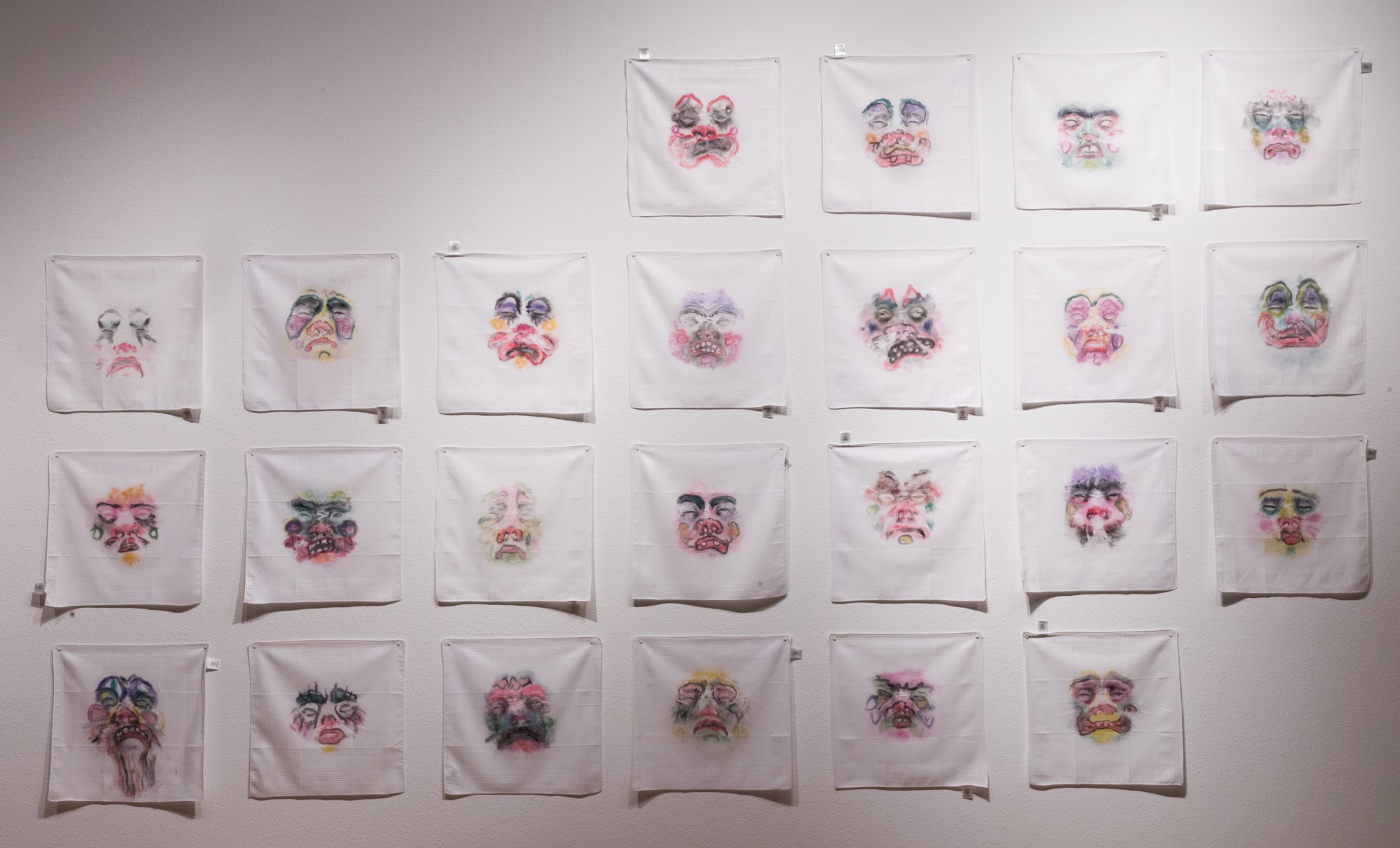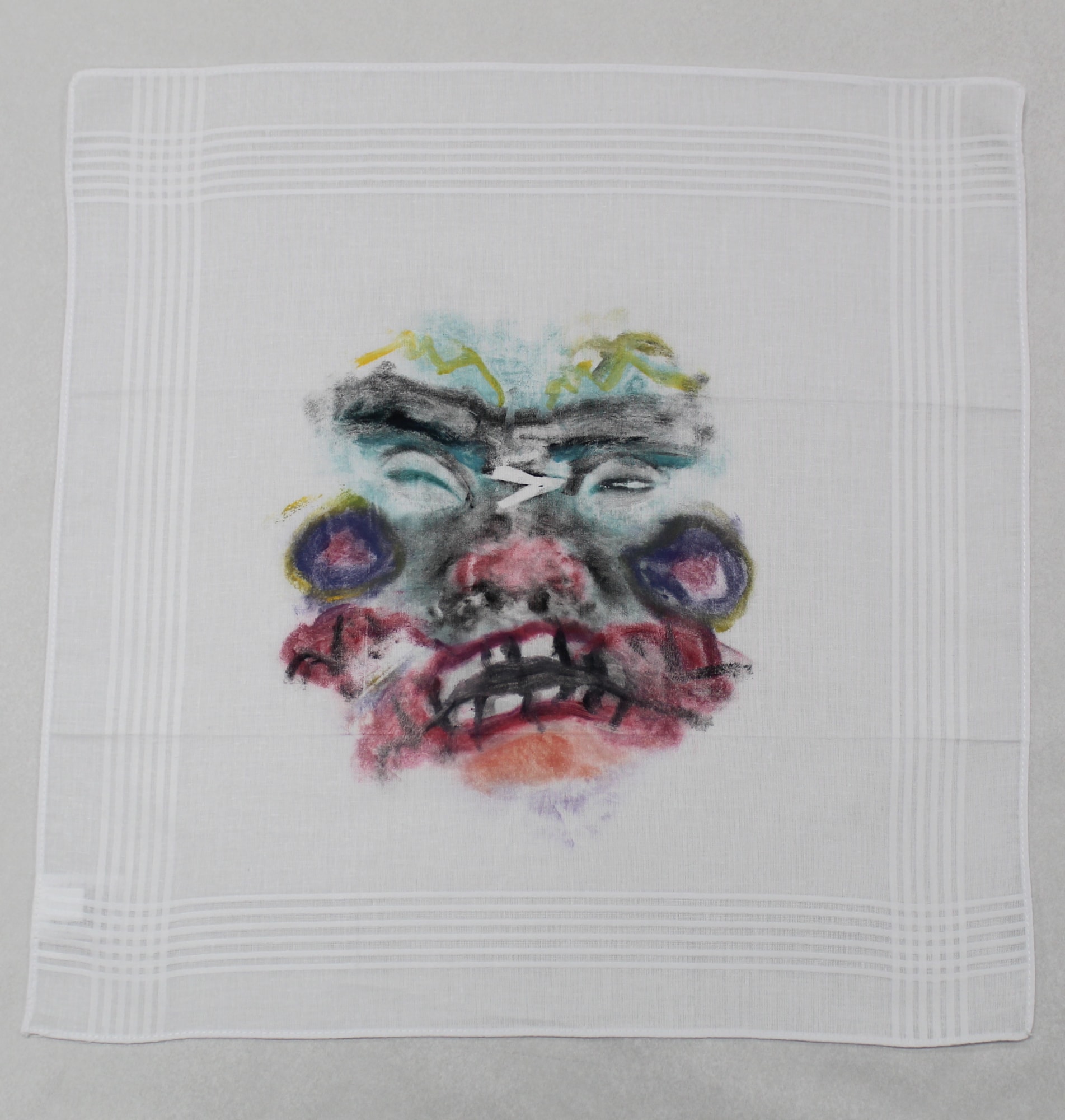 ‘Face painting is a part of my [clowning] practice, but it’s usually not something I think of outside of doing a performance. [By printing my face on handkerchieves] I was able to move into another body of work that I was actually able to do. So that’s been the main thing that I’ve been doing. During and after the virus. It’s part of my practice to make something every day. The truth is this is an emotion-based practice that allows me to process whatever I’m feeling. In a creative way. And then wash it off. And send it down the drain. I print it to preserve it. I take a photograph of it as a way to remember. And to share [on social media]. Because I feel like not everybody turns to creative expression when they’re struggling. Or when they’re emotionally exhausted. Or lonely. Or any other kinds of feelings. But I know that some people who don’t do that themselves, turn to other people’s creative practices to help them.”