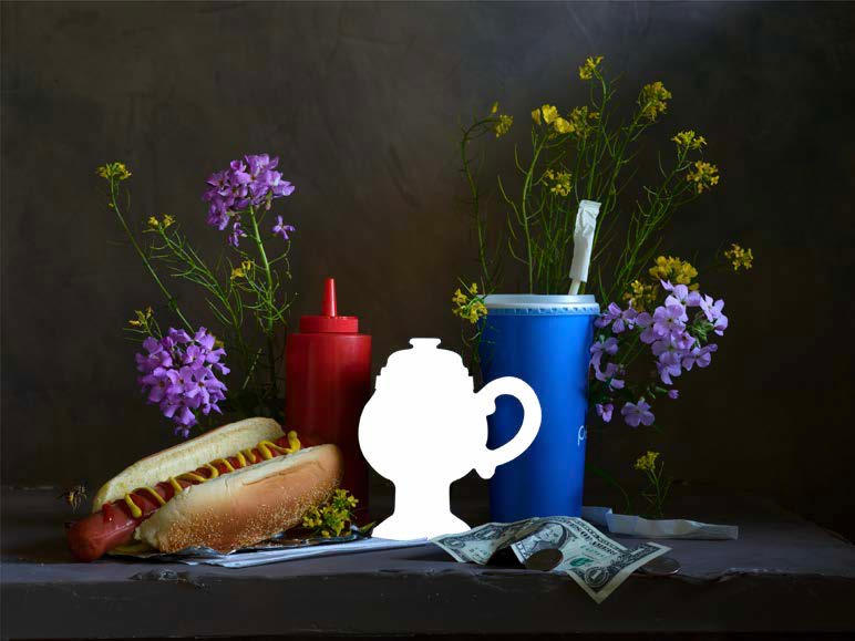 Shih collaborated with the Museums at Washington and Lee University in southwest Virginia to mine their Collection of Chinese Export Porcelain and create the series of works that includes Dad’s Favorite, Mondays and Gilding the Lily/Corn Soup. Choosing from a range of almost 3,000 Chinese-made ceramics, she used historical research to connect them to Europe and Asia before drawing on her own presence in contemporary America to bind everything together.