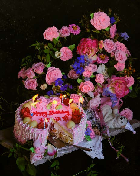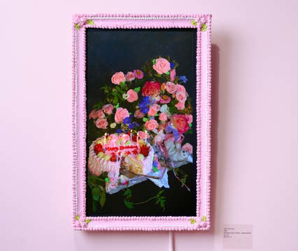 Seventeenth-century flower paintings from The Netherlands often use dark backgrounds and deep shadows to counterpoint the bright colors of their subject matter. Here, Stephanie Shih (史欣雲) uses that visual language to symbolically unite Europe with, in her words, “comfort foods from my own upbringing as a Taiwanese-Chinese American—foods that are derided as ‘strange’ in the United States but hold quotidian significance in Chinese culture.”