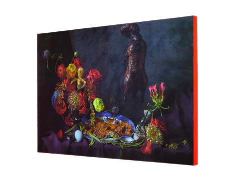 “Much of the diasporic experience involves grappling with the continued amputation of the context of our origins, histories, and cultural practices when we are perceived as cultural ‘others’ in American society,” said Shih in an interview with Lenscratch. As a professor of linguistics as well as an artist, she notes that still lifes constitute visual languages, with distinct culturally-specific traditions and references. “Still lifes are the one genre historically that comes absolutely loaded with symbolism, with signs in the art that communicate messages to the viewer. There are flies in classic European religious still lifes that symbolize mortality and decay in contrast to godliness. In historical Chinese art, rebuses–‘visual puns’–were incredibly common: for example, the combination of peonies and roosters symbolize a well-wishing for achieving success because the words for peonies and roosters sound similar to the words for prestige, honor, and expectation." By merging symbols from multiple traditions across Asia and Europe into a united American whole, her work resists the process of amputation.