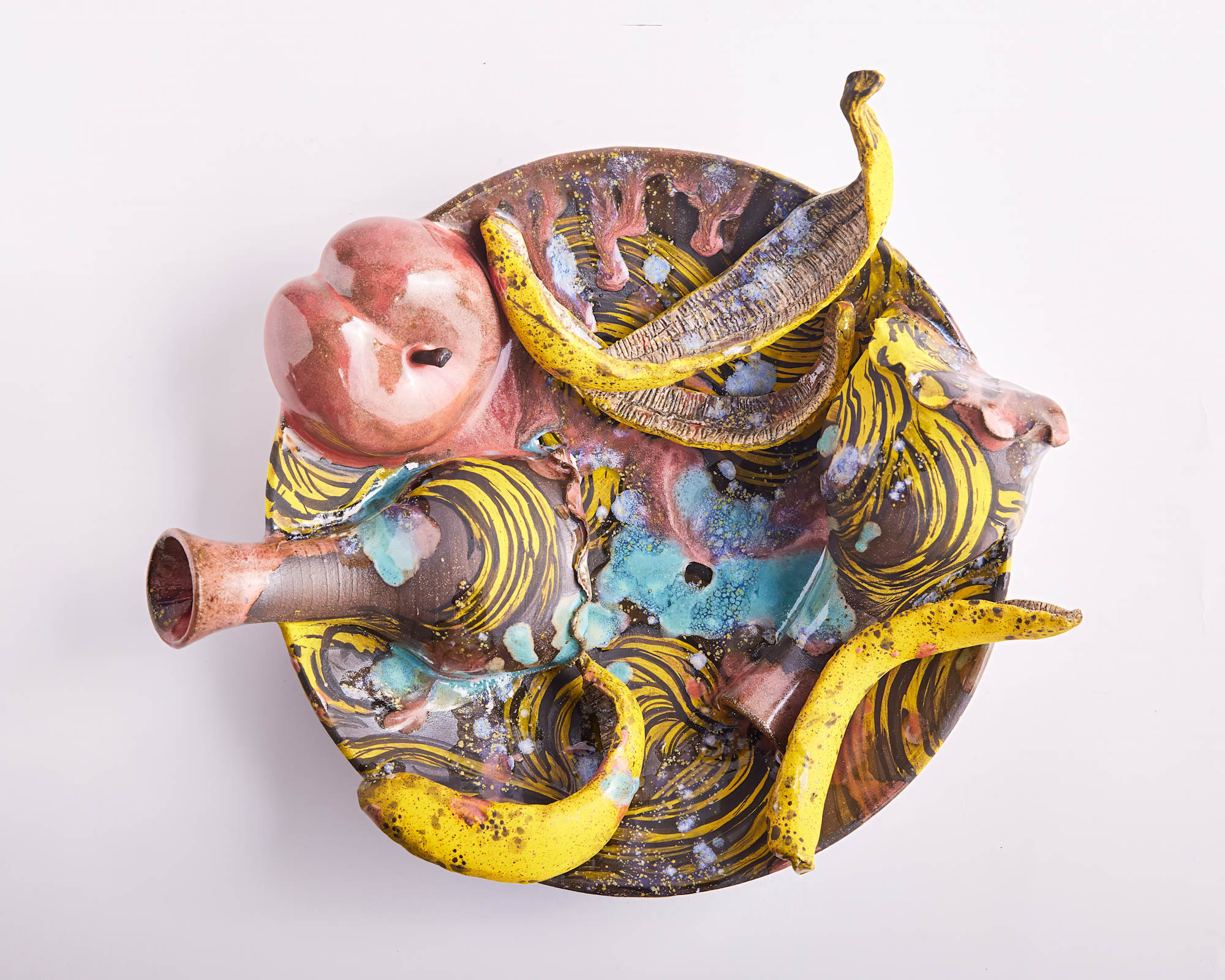 This ceramic is part of Jiha Moon’s Yellowave series. She uses the color yellow to convey a “social, political, or cultural point of view,” acknowledging its historical association with racial slurs directed at Asian Americans. By prominently and abundantly incorporating yellow in her work, she subverts these biases and reclaims it as a symbol of joy.