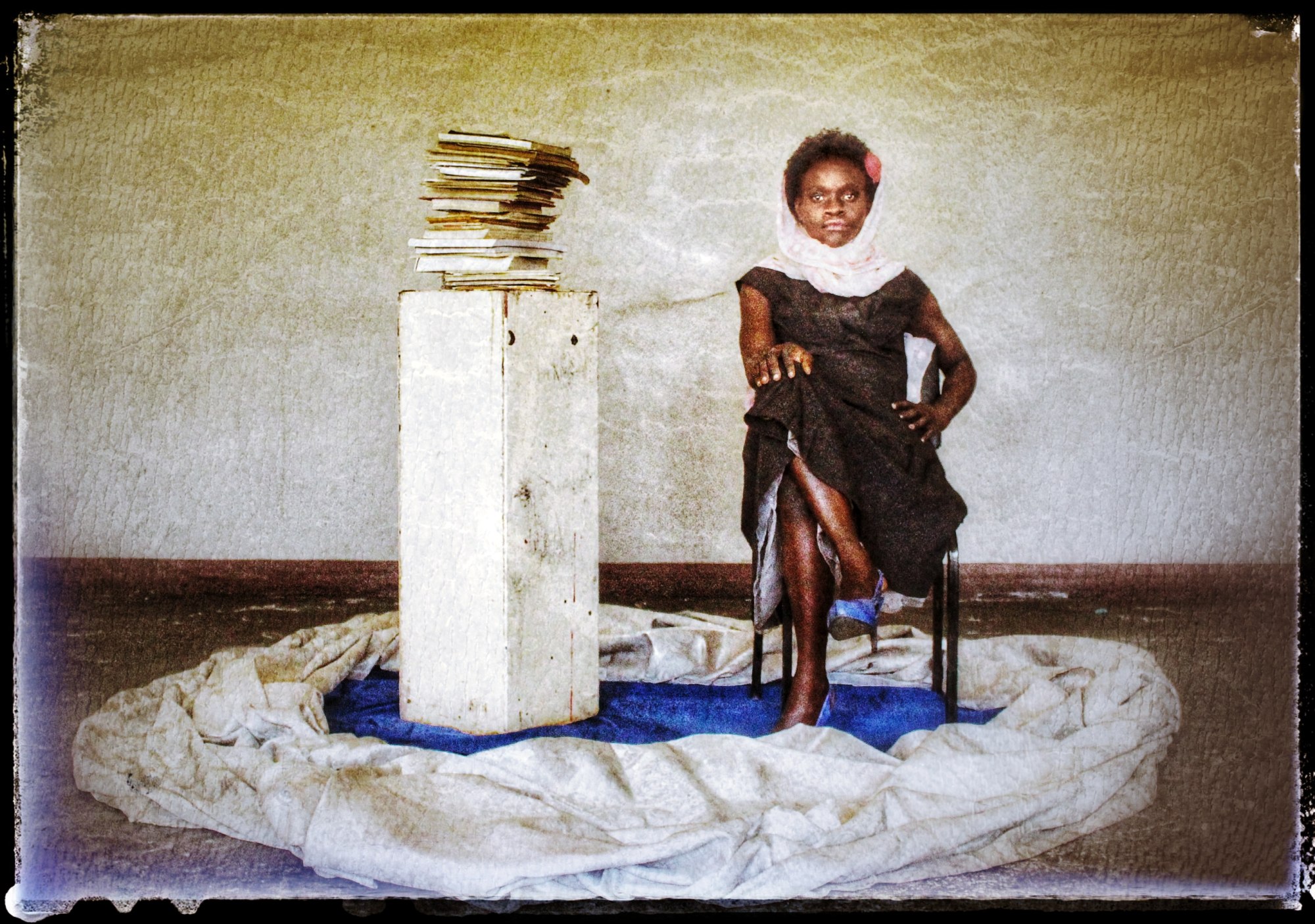 Dealing with a wide range of themes, these works represent Nothando Chiwanga’s performance and photographic practice. Reflections shows an almost deserted kombi rank (commuter van stop) in Harare, a rare occurrence before the COVID-19 related lockdown, and is quite prophetic of the ghost city Harare has become during the pandemic. Beyond this, it reveals the poor maintenance of the majority of the city, which is usually obscured by the constant throng of people. Trapped addresses the historical suppression of black women. An Act and Zvokudya (Food) are, by extension, a commentary on the need to counterbalance rising unemployment and poverty with education—issues that have been exacerbated by the global pandemic. In a nation where we do not ask enough questions, the national and municipal government systems have taught us to be resilient. We are constantly negotiating ourselves into situations that lead us to suppressing our emotions instead of expressing them.