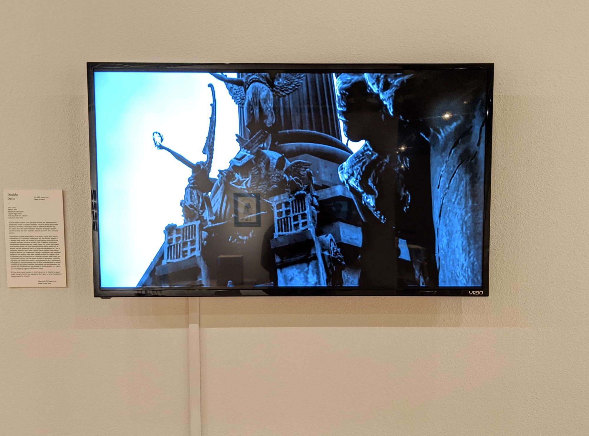 This selection of videos brings together three actions carried out in the city of Barcelona. CP12, realized in collaboration with Xose Quiroga, consists of a detailed visual journey that stresses the racist ideology epitomized by the Columbus monument located in the Plaza Colón. In addition to Columbus, the monument commemorates two Catalan figures who actively participated in the colonial process, the priest Bernardo de Boyl and the soldier Pere de Margarit, who are represented next to an Indigenous man kneeling in a sign of submission. Réplica is set in Plaza Cataluña, one of the main public spaces where the National Day is celebrated. Carrying a photograph of the anonymous Indigenous man kneeling under priest Bernardo de Boyl, Ortiz kneels in front of passersby, tries to explain that the Columbus monument reifies racism, and receives some irritated and even violent reactions. In Reparación, Ortiz reads fragments of El primer nueva crónica y buen gobierno (1615), a manuscript by