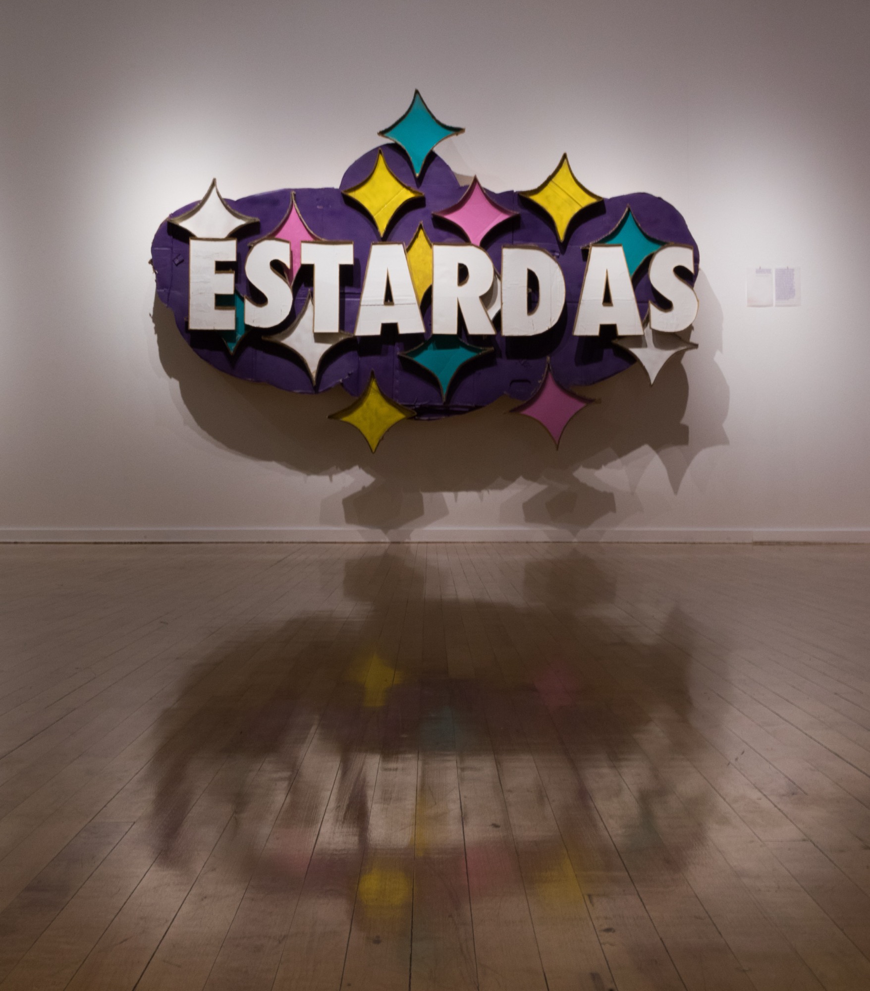 Favela’s background as a native Las Vegas artist of working class Mexican and Guatemalan heritage is asserted in this piece, which transforms the landmark sign of the city’s historic—now imploded—Stardust casino into an expression of vernacular pronunciation and thrifty materials. (DKS)