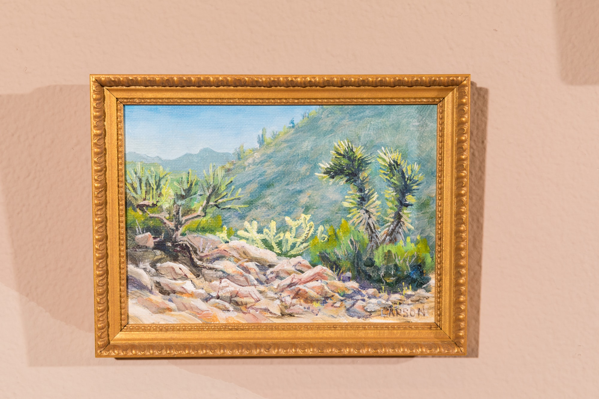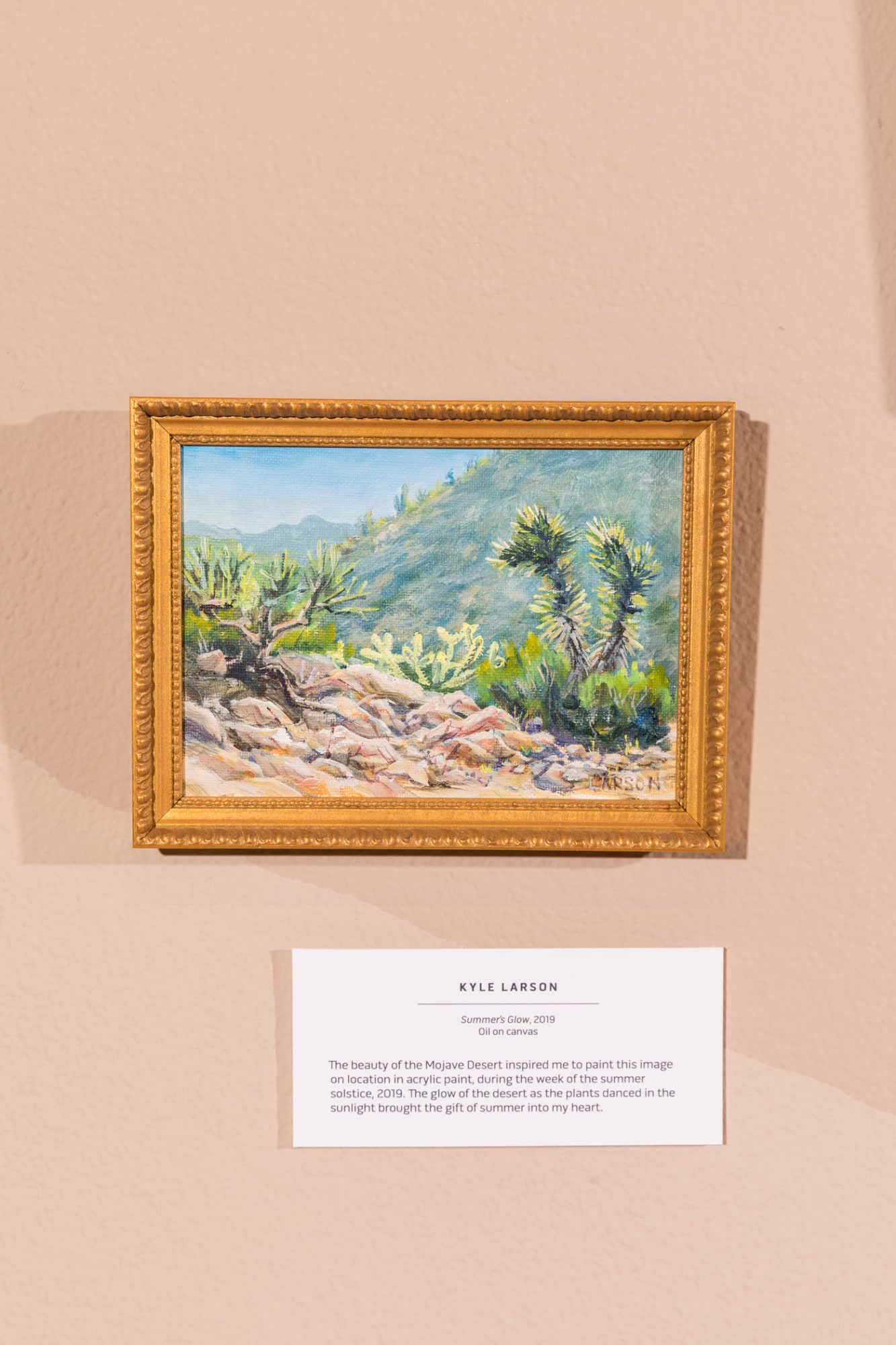 The beauty of the Mojave Desert inspired me to paint this image on location in acrylic paint, during the week of the summer solstice, 2019. The glow of the desert as the plants danced in the sunlight brought the gift of summer into my heart.
