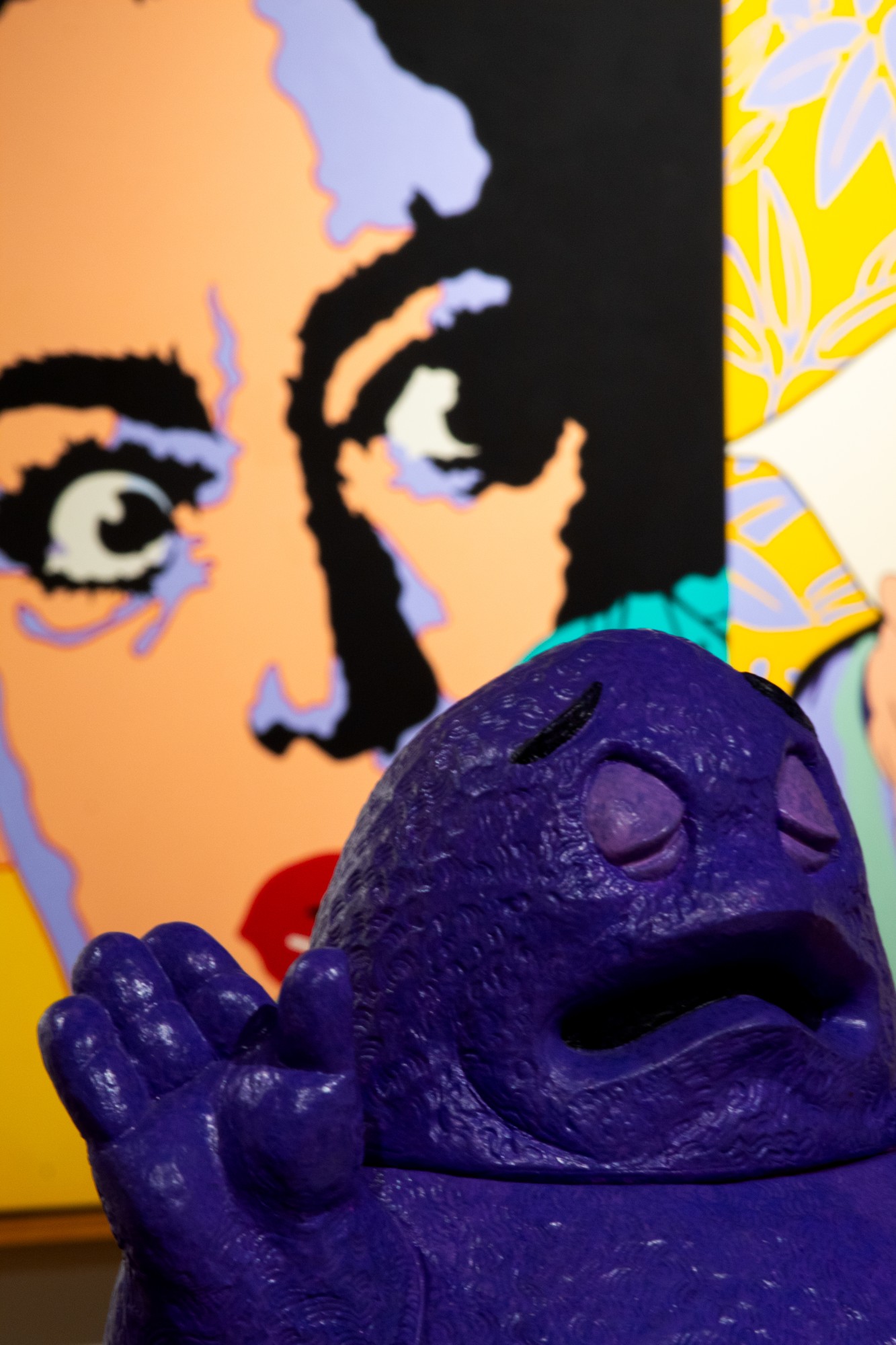 Martin Kreloff is a hard-edge painter who focuses primarily on portraits, rendering his people with striking color palettes that heighten their emotional impact. His subjects vary from Hollywood stars to friends, family, people in the street, and the Japanese theater celebrities portrayed in ukiyo-e prints. DEMANDING MOTHERS is part of a series he created to honor his mother. In spite of its threatening subject matter, the work is an expression of love. “In early 1983 I learned that my mother was terminally ill with lung cancer, and only had a short time to