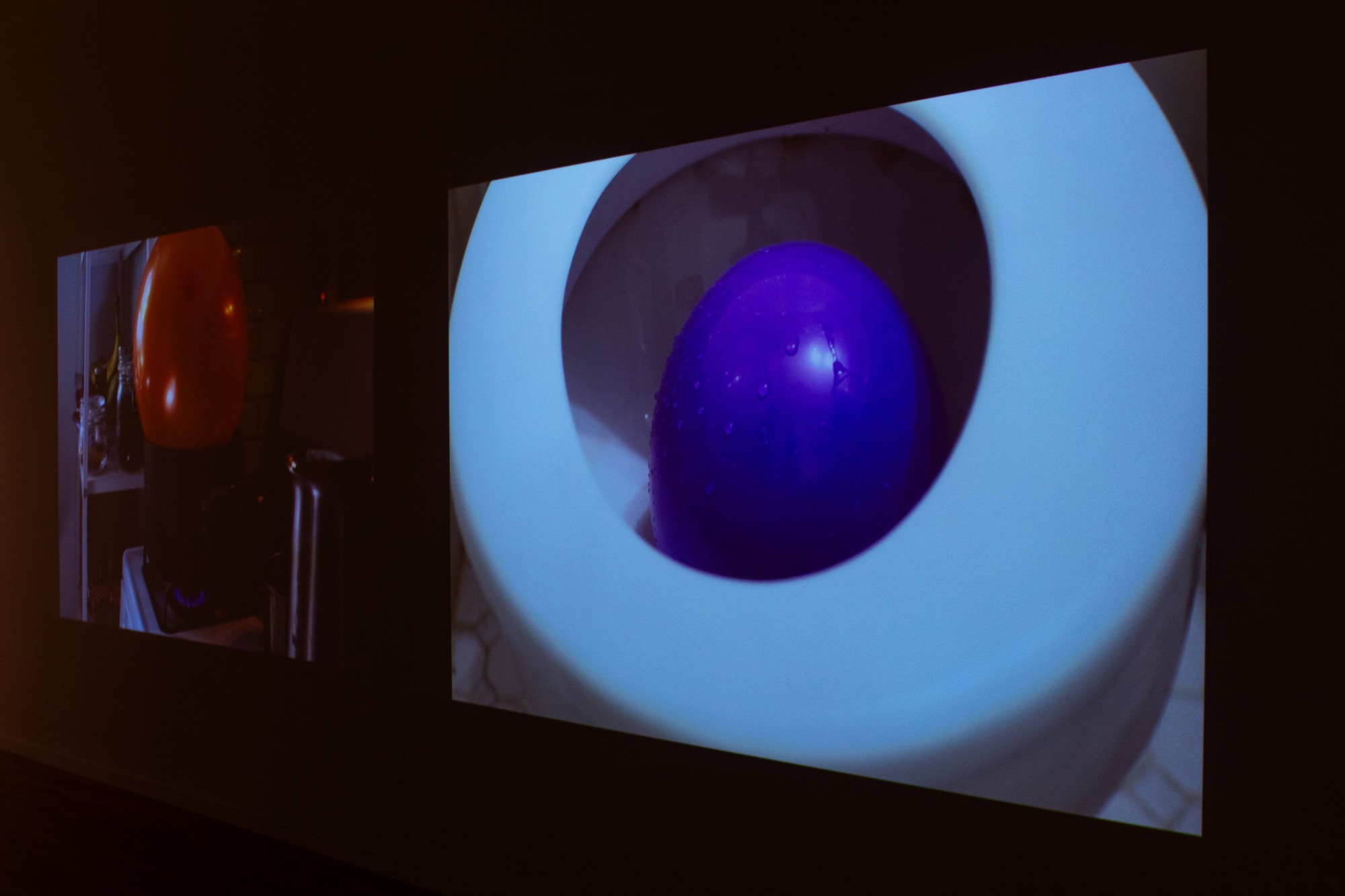 The work of Néstor Pérez-Molière pivots around acts of confessional self-discovery. The artist uses photography, performance, and video to thoughtfully manifest his feelings of shame, dysmorphia, loneliness, and depression as well as the behaviors—such as compulsive comfort eating—that accompany them. In his notes for the Warning: Choking Hazard series he draws attention to the way the balloon is burdened by its own delicate and vulnerable bulk, connecting it to the predicament of a human body. “Bodies over the size limit can choke or suffocate on uninflated and broken balloons,” he writes. “Keep sweating balloons from your mouth. Discard broken balloons at once. Beware of overflowing. Adult supervision is required.” Other videos in the series show balloons being squeezed by a belt or rubbed mercilessly against one another like thighs in underwear until one of them explodes.