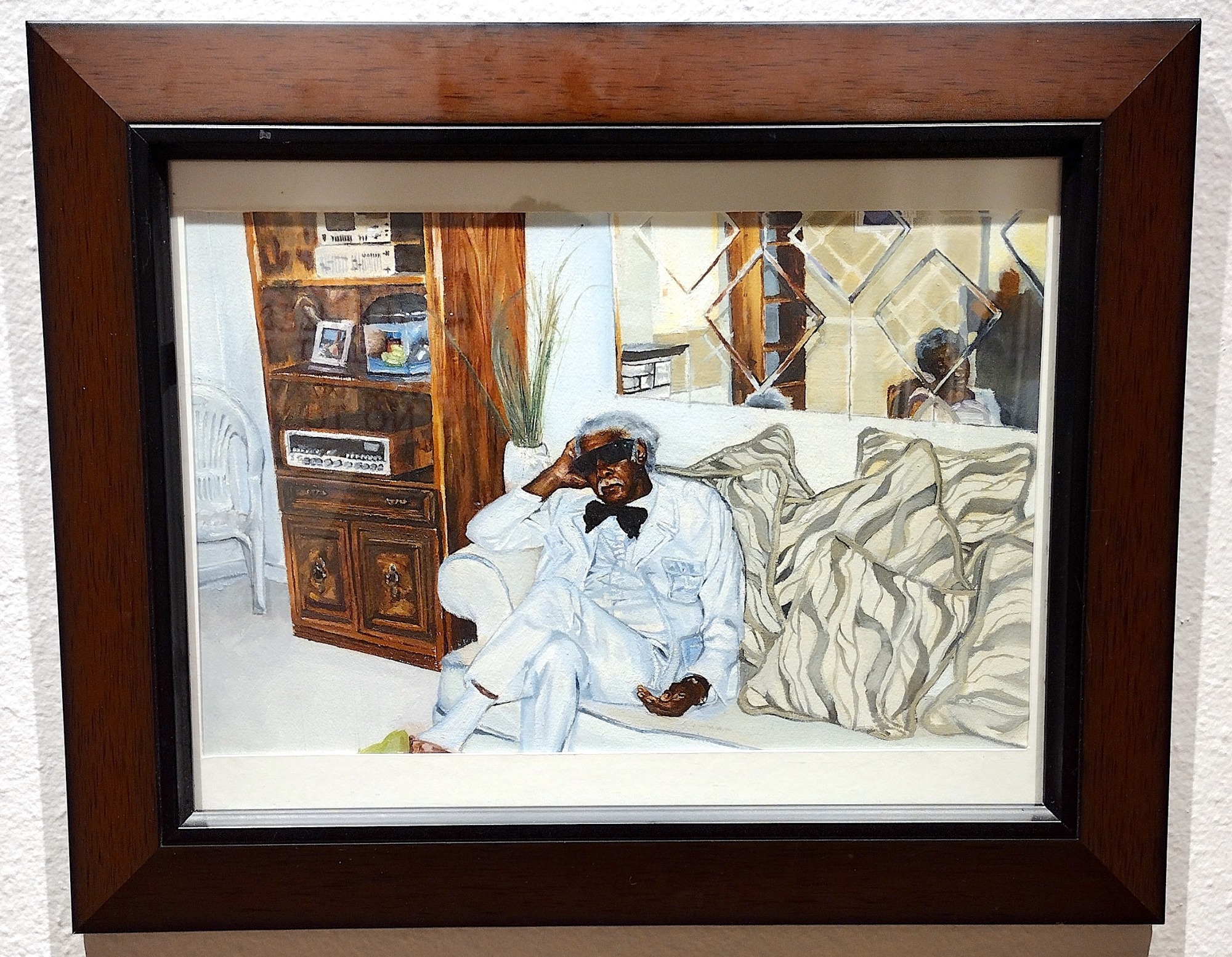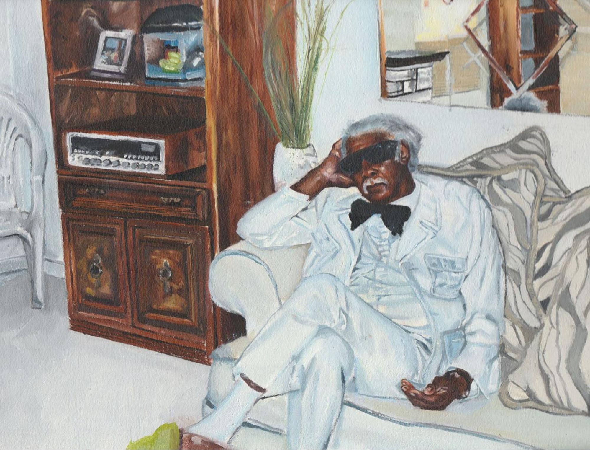 I painted the time my grandfather, Quincy, fell asleep in the middle of a function. This image is one of many candid moments. Peering into an old photo is a form of time traveling. It’s a peek into a moment that can no longer be physically revisited, but re-experienced.