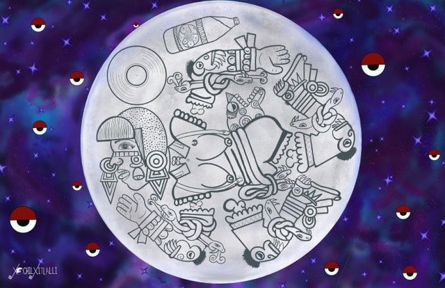 Coyolxauhqui is the energy of the moon; this piece is about the feminine being broken, the feminine feeling incomplete, although she is always whole sometimes she appears incomplete. This particular version is a skin byrd which is a sub-genre of the punk movement: skin birds emerged from the sexism they experienced within the punk movement, being told women can’t be punk, so they made their own movement. They shaved their heads and wore boots. They started bands. They were brutal in the mosh pits, and they strove to out-macho the men that told them they were too feminine.