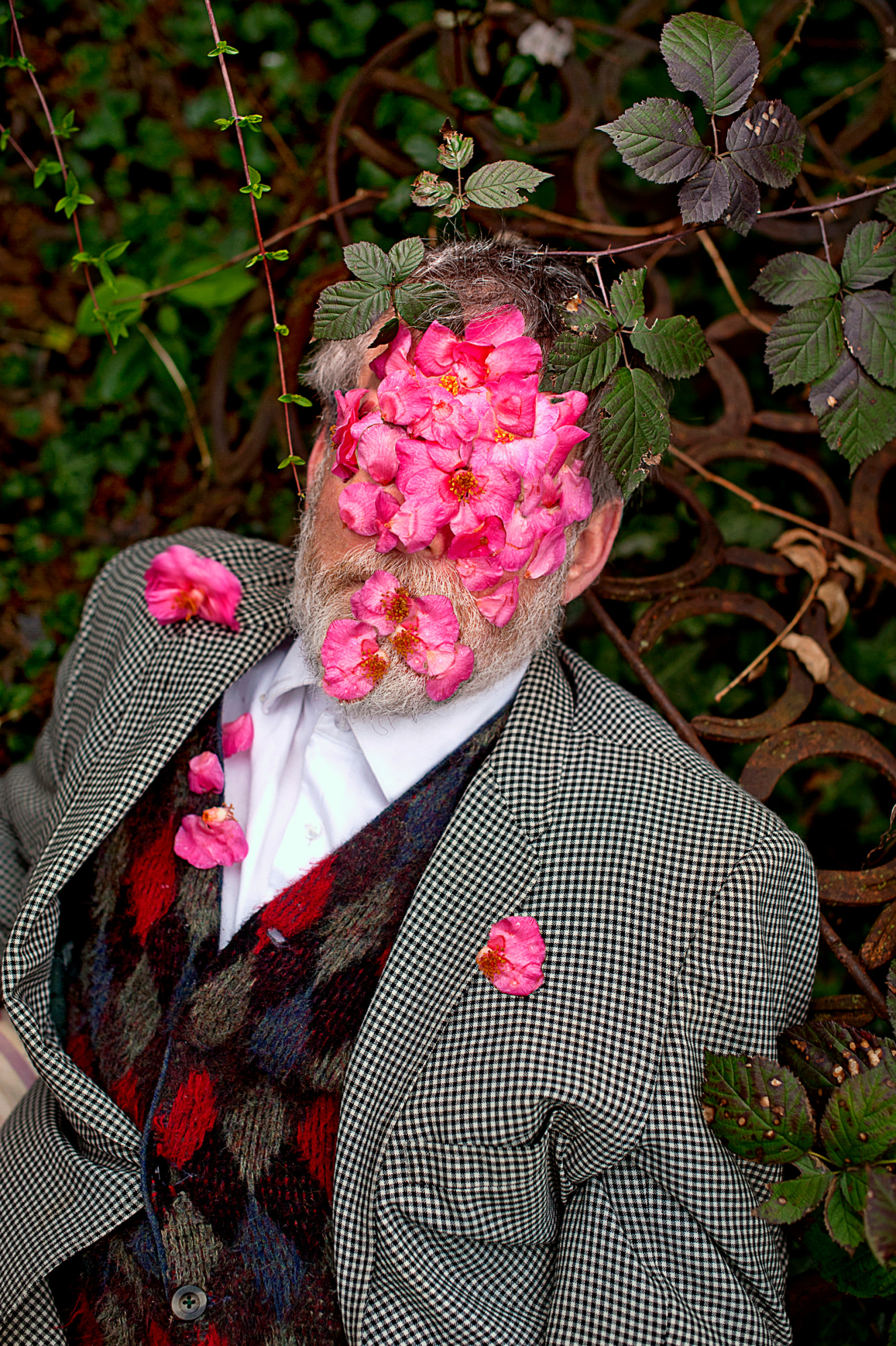 During the pandemic, Raymond Grubb turned the camera inward, focusing on self-portraits as well as portraits of his partner of thirty-five years, Tom Thoune. Their pandemic routine included twice daily meditations, yoga, and several-mile walks--all aimed at quieting anxiety and encouraging creativity. During his walks, Grubb gathered plants in the neighborhood around their home in Charlotte, as well as from nearby Chantilly Ecological Preserve. He then composed images of himself and Thoune, often with the blooms or leafy branches covering or interacting with their faces and bodies. Grubb likens the weaving of plant and animal forms together to the painted margins of illuminated manuscripts, similarly once produced within the confines of cloisters.