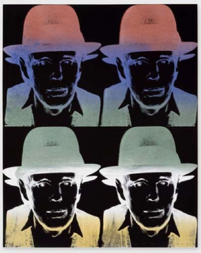 Artist Joseph Beuys, the subject of this screenprint, was born in 1921 in Germany. He fought in World War II, and after the war he studied at the Dusseldorf Academy of Art. Beuys was involved in post-WWII groups that called for worldwide disarmament and peace. The artist became internationally well known during his lifetime and produced sculptures and drawings until his death in 1986.