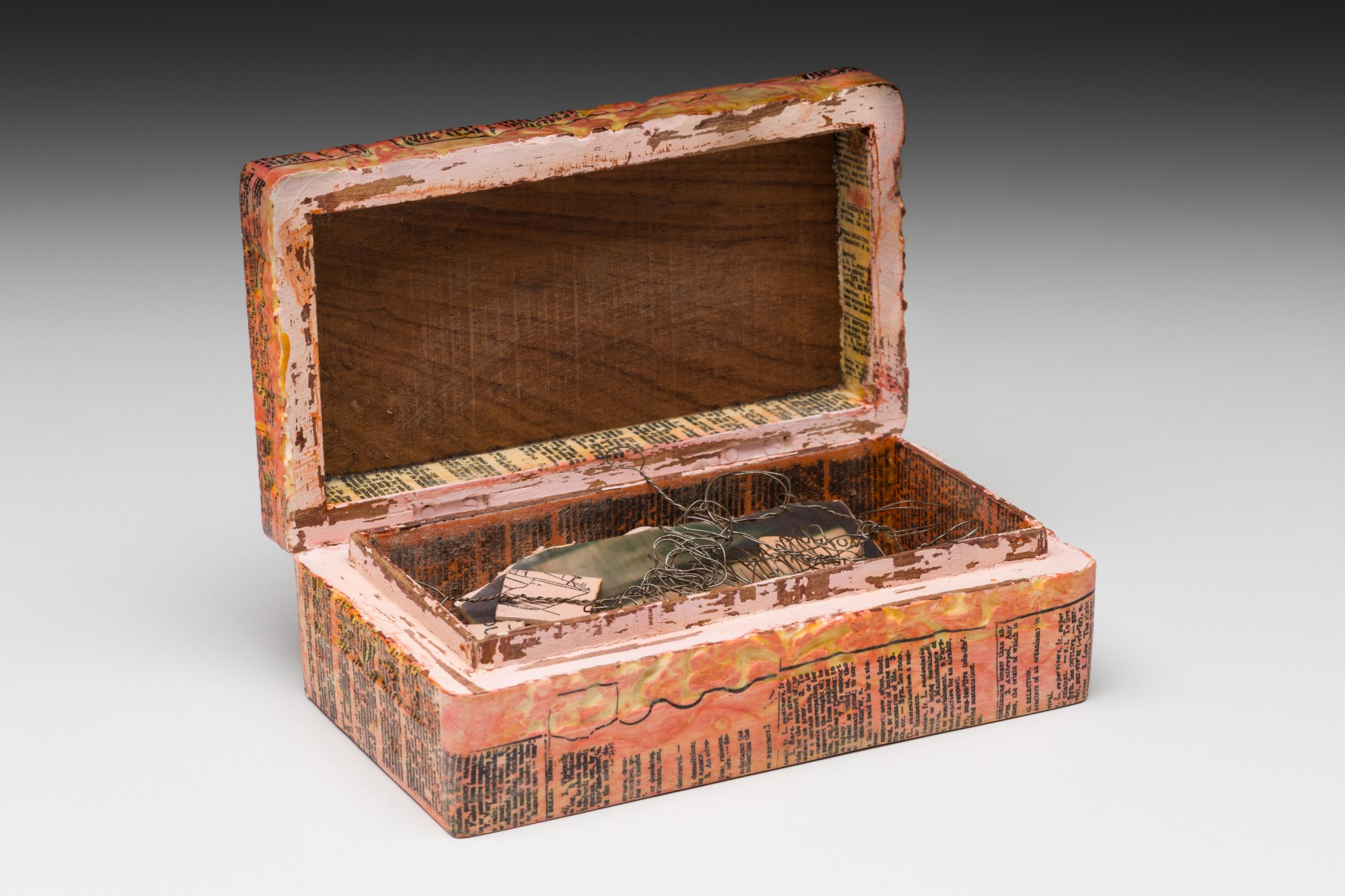 - Box with large clay tablet with photo of an open door, 12 smaller tablets, 2 dancing wire figures