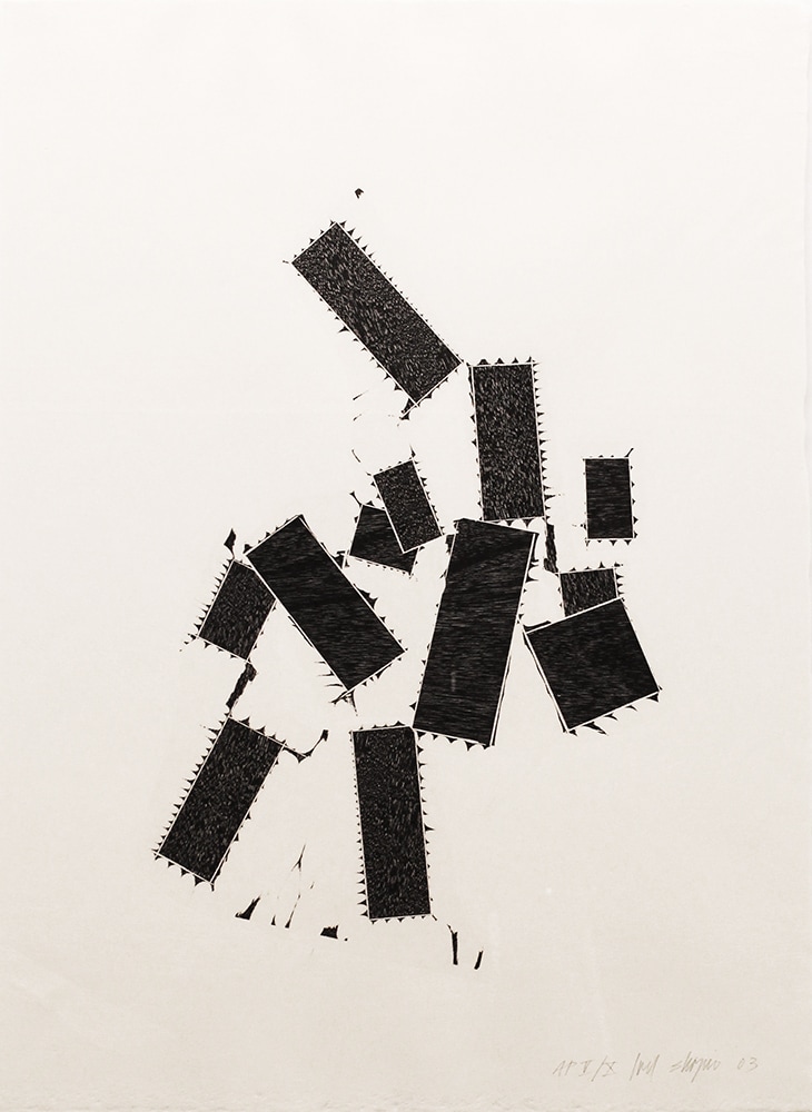 - Woodcut printed on Gampi paper, mounted onto Hanga Dosa paper