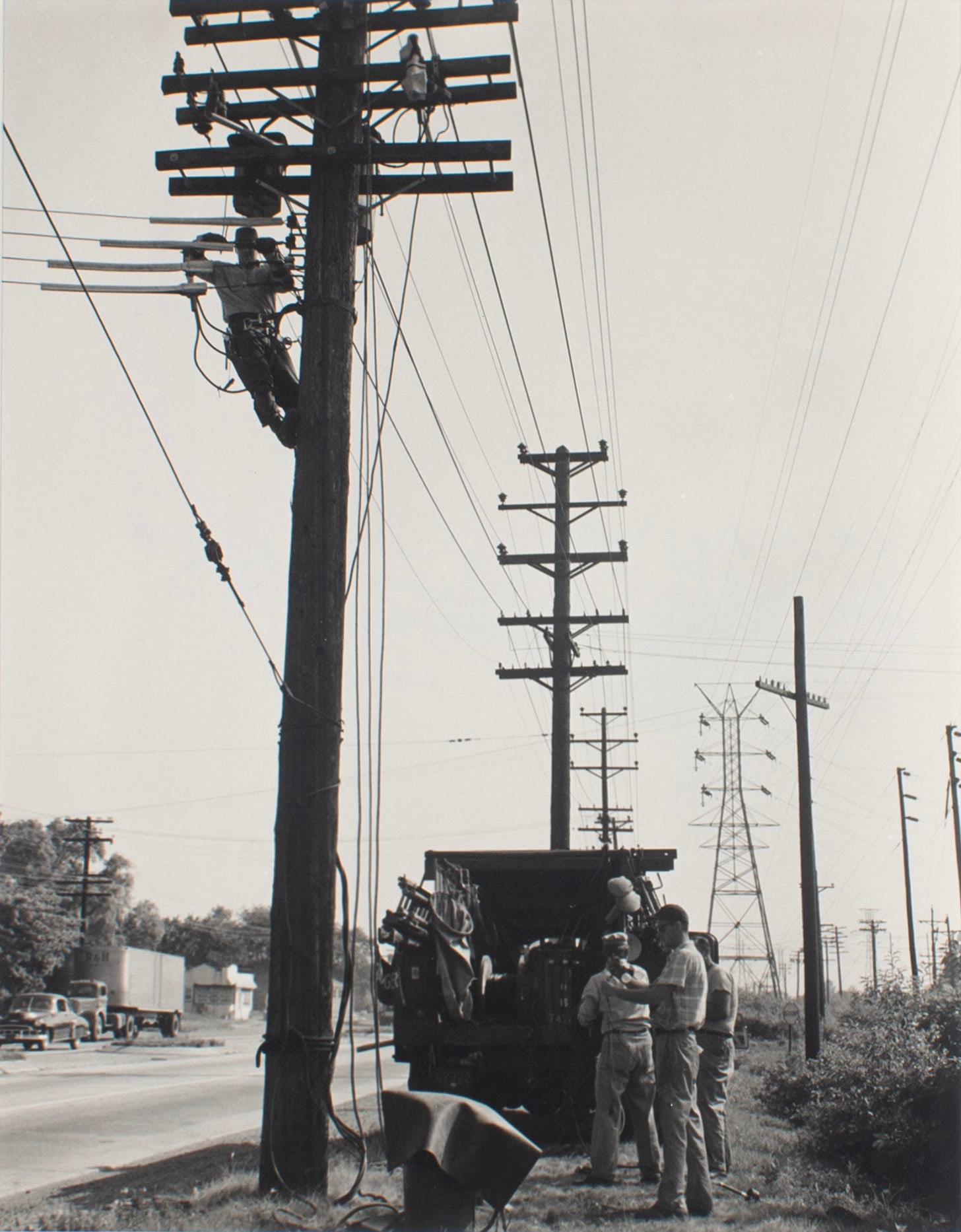- Untitled (roadside crew working on utility pole), 1954