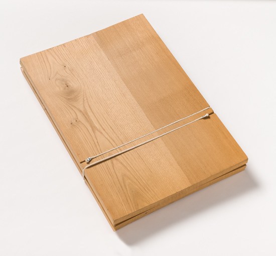 - Wire, wood, embossed paper, photographic prints on paper, chestnut wood box
