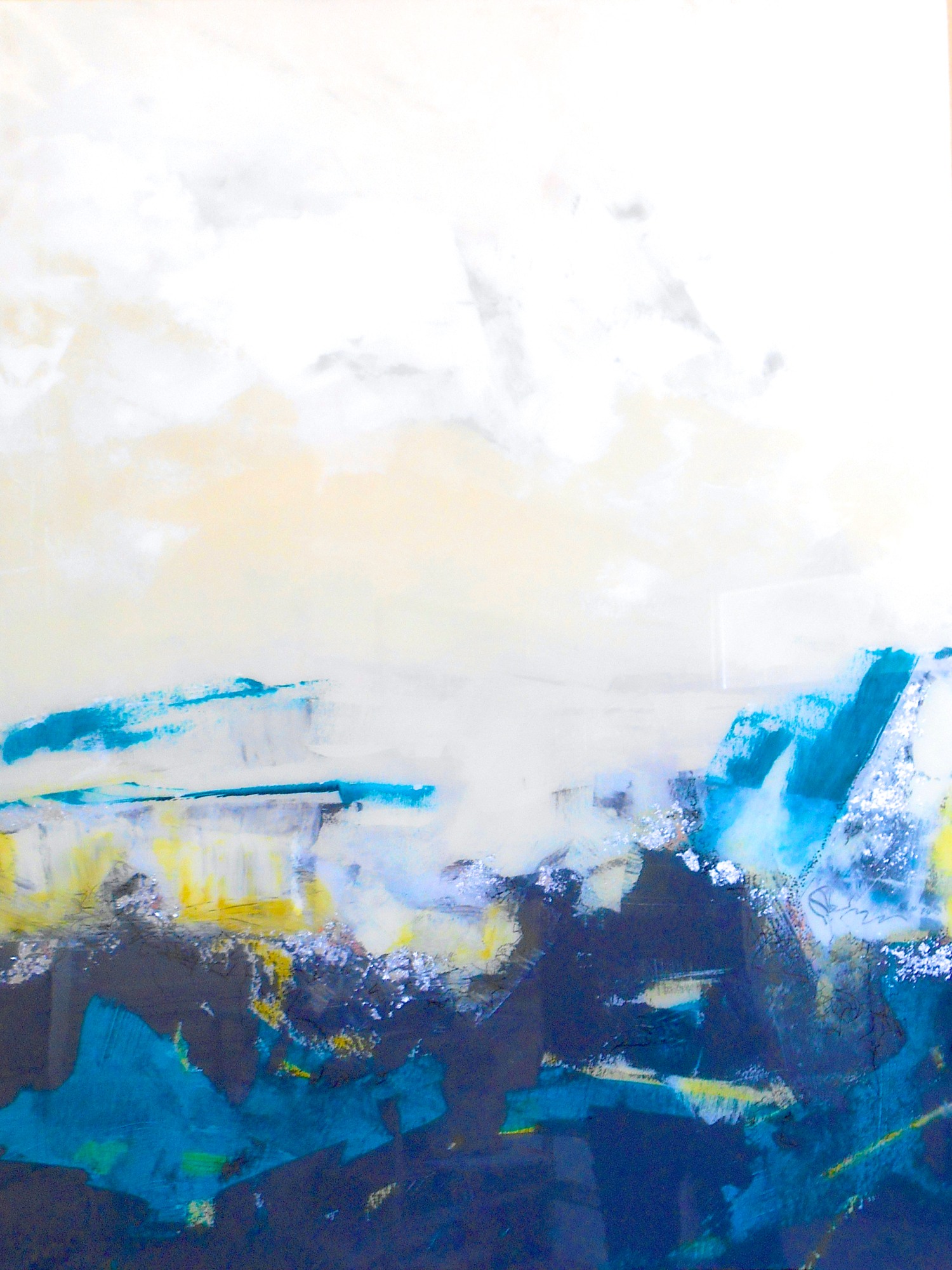 Gorgeous hues of turquoise and beiges with silver leaf and finished with poured resin
