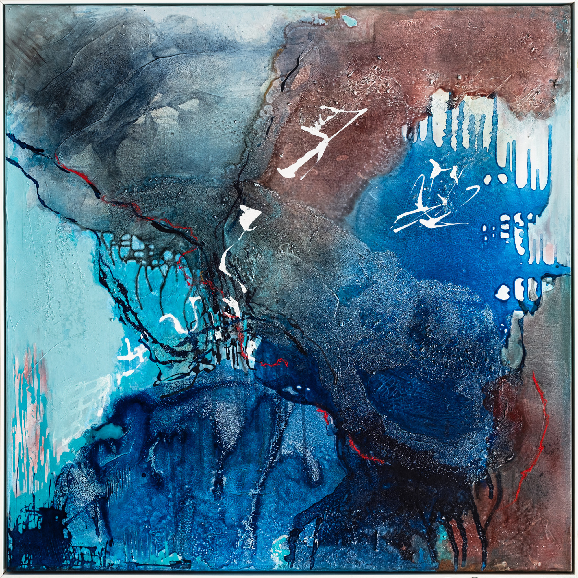 Das leuchtende Blau zieht sofort jede Aufmerksamkeit auf sich. Mitten in diesem Meer aus Blau fällt ein roter Strich auf, der als markanter Kontrapunkt wirkt und eine starke visuelle Spannung erzeugt. Dieser rote Akzent verleiht dem Bild eine unerwartete Lebendigkeit.