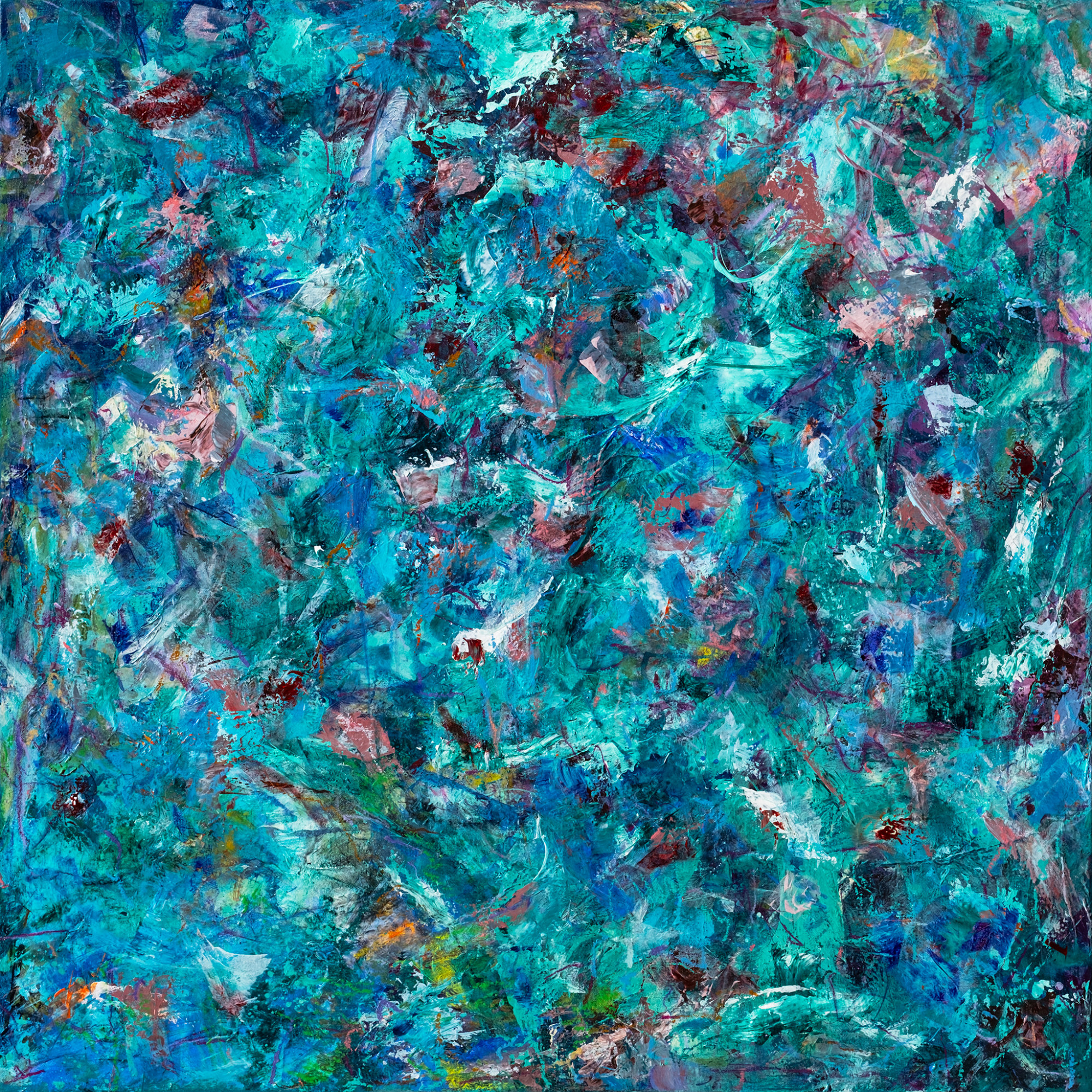 Mehrheitlich in Phtalogrün gehalten symbolisiert es die Freiheit und Vitalität der Natur. Frische und Lebendigkeit durch Rosa und Rot und Blau. Die Kombination dieser Farben schafft ein schönes Zusammenspiel von Kontrasten und Zusammenspiel. Insgesamt strahlt das Bild eine Atmosphäre von Freiheit, Lebendigkeit und Selbstausdruck aus.