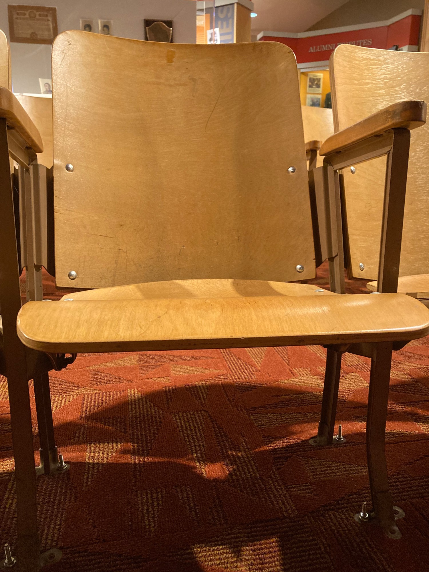 This chair is in the first row of chairs, 3rd chair on the right when looking from the stage in the museum.