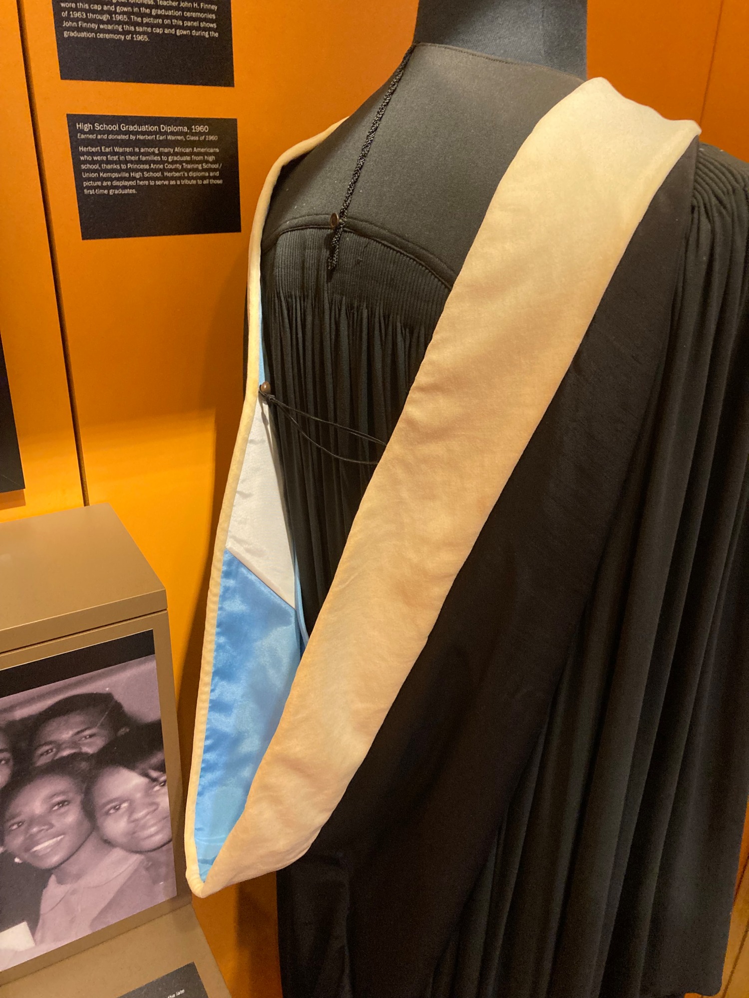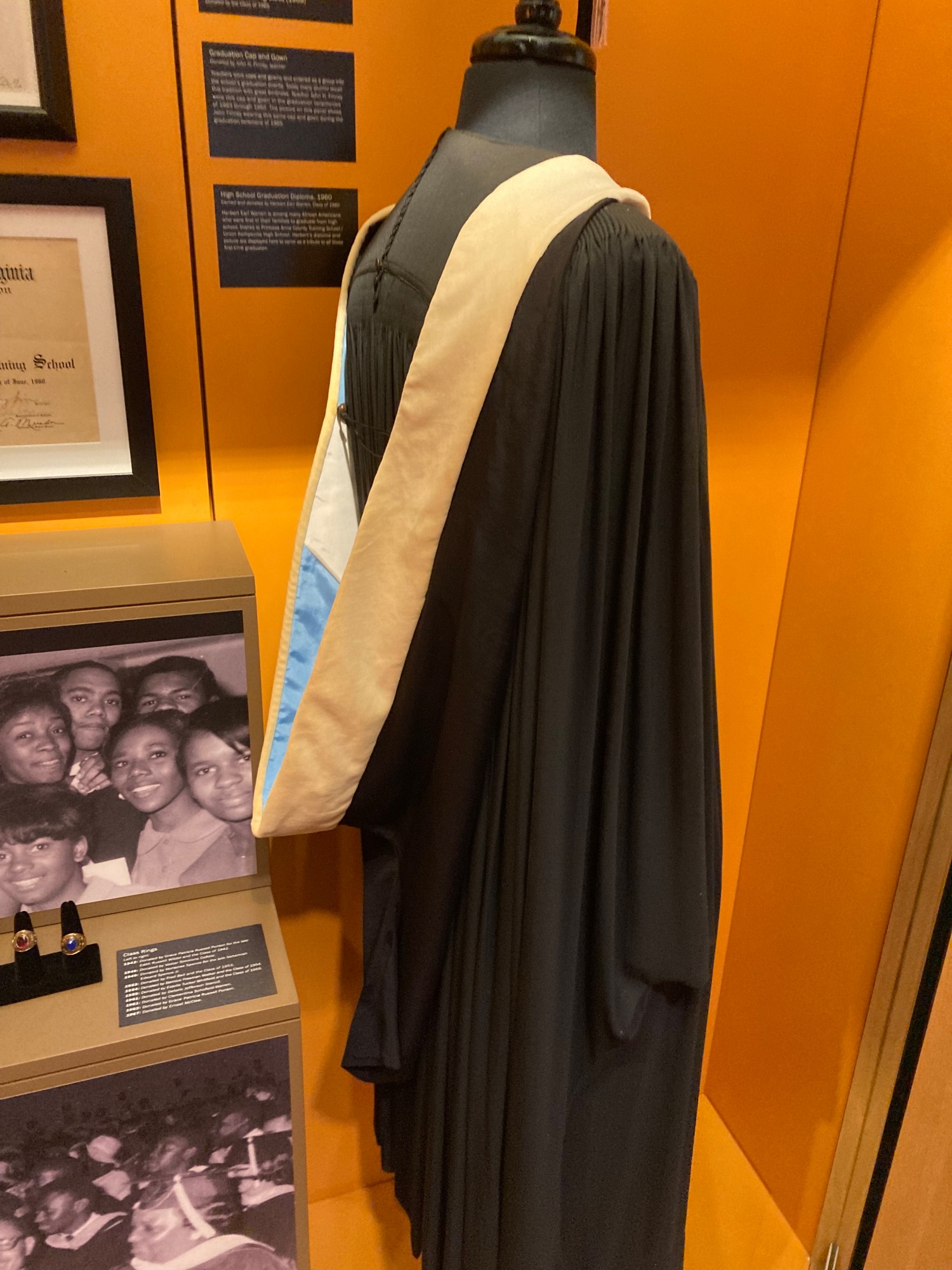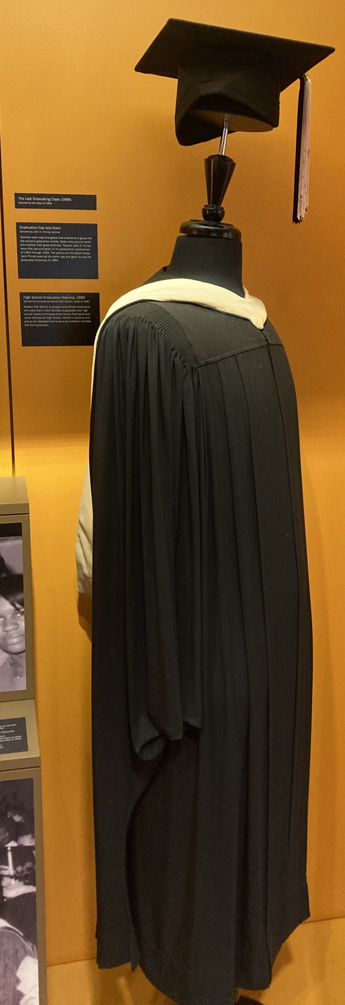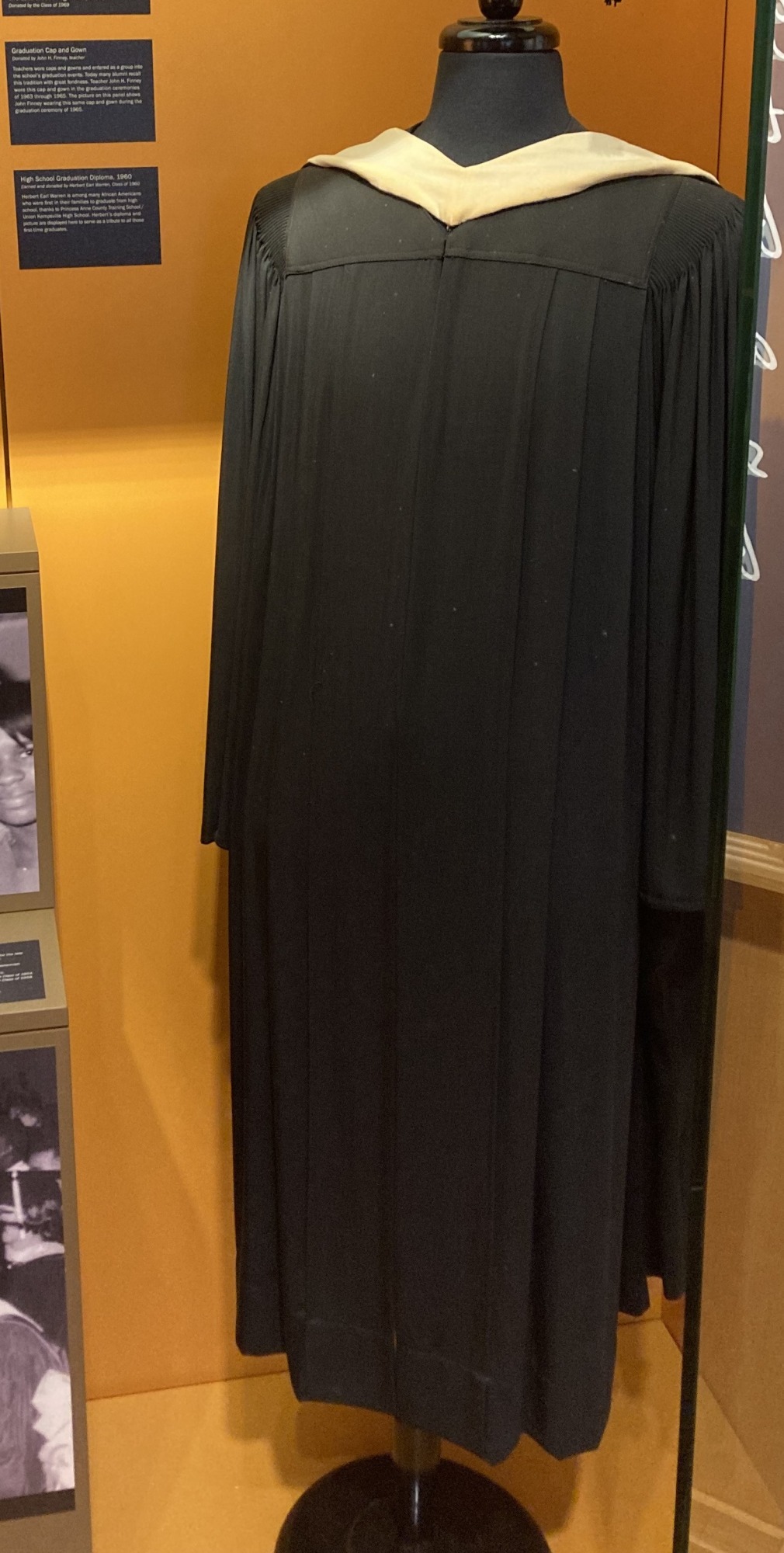 Black polyester graduation gown worn and owned by John H. Finney at the Union Kempsville High School graduation ceremonies for 1963, 1964, and 1965.
