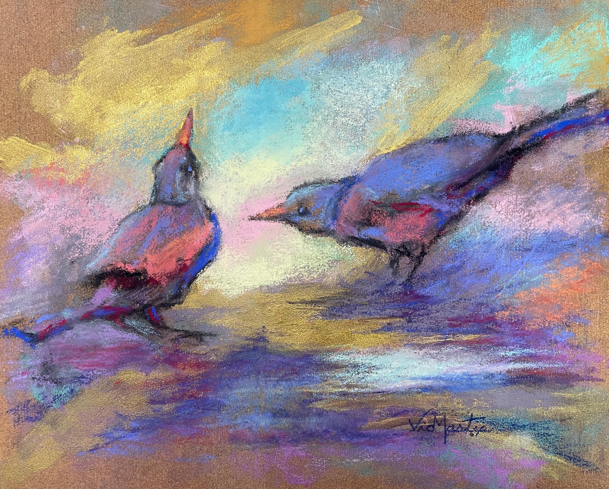 These birds were playfully splashing in a puddle at the gas station. I got a kick out of watching them interacting with each other.