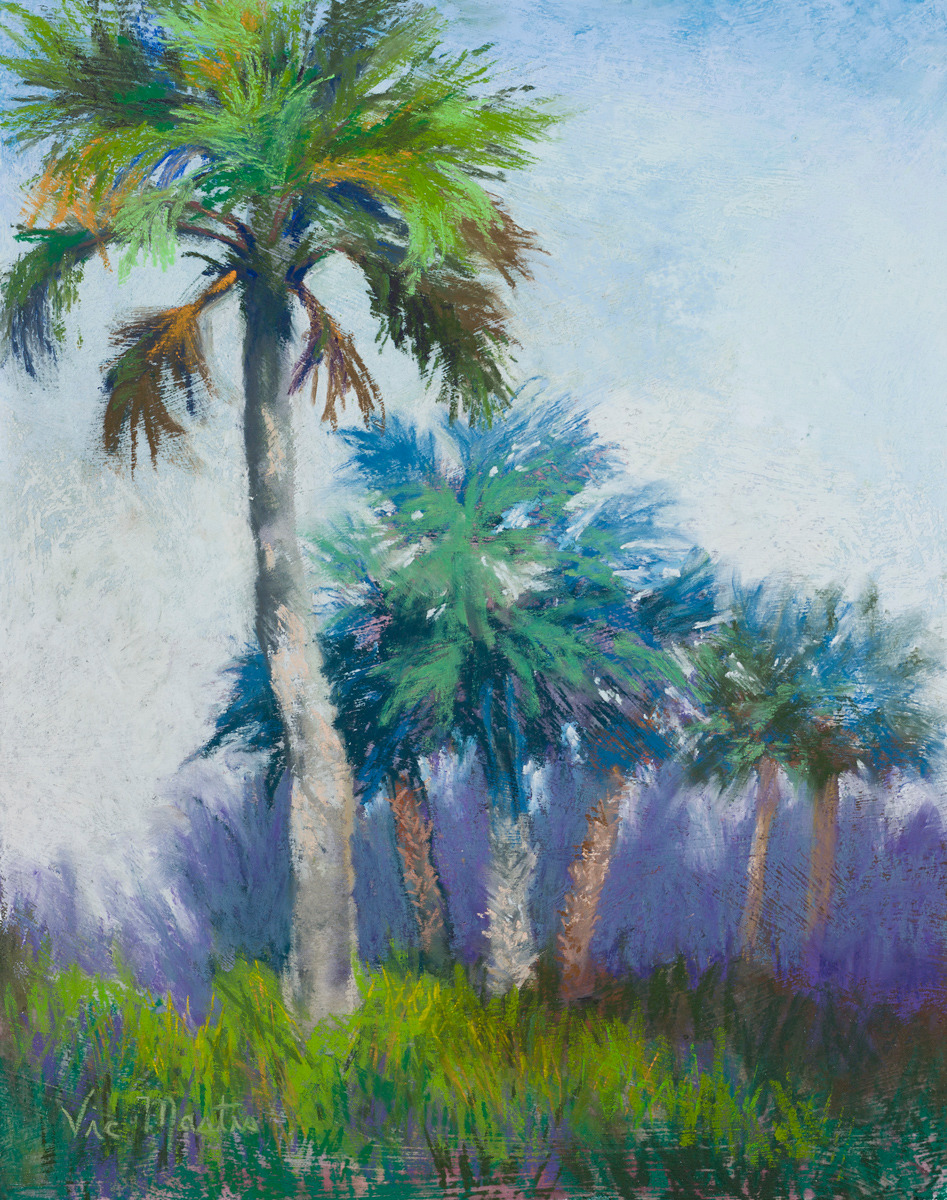 While looking for a place to plein air paint, I saw this stately palm tree with the other palm trees set behind it. They looked like they were letting the first tree take the lead.