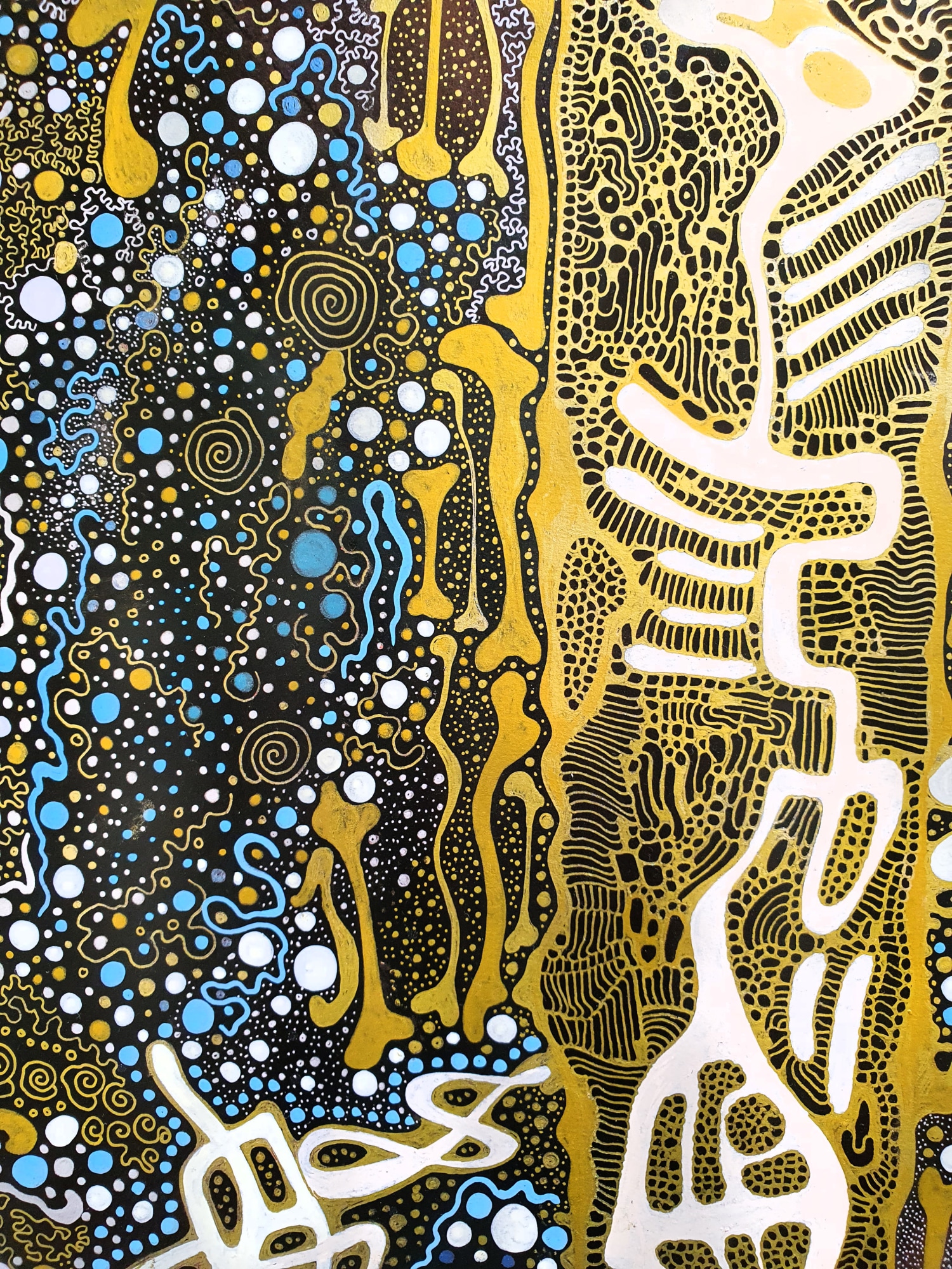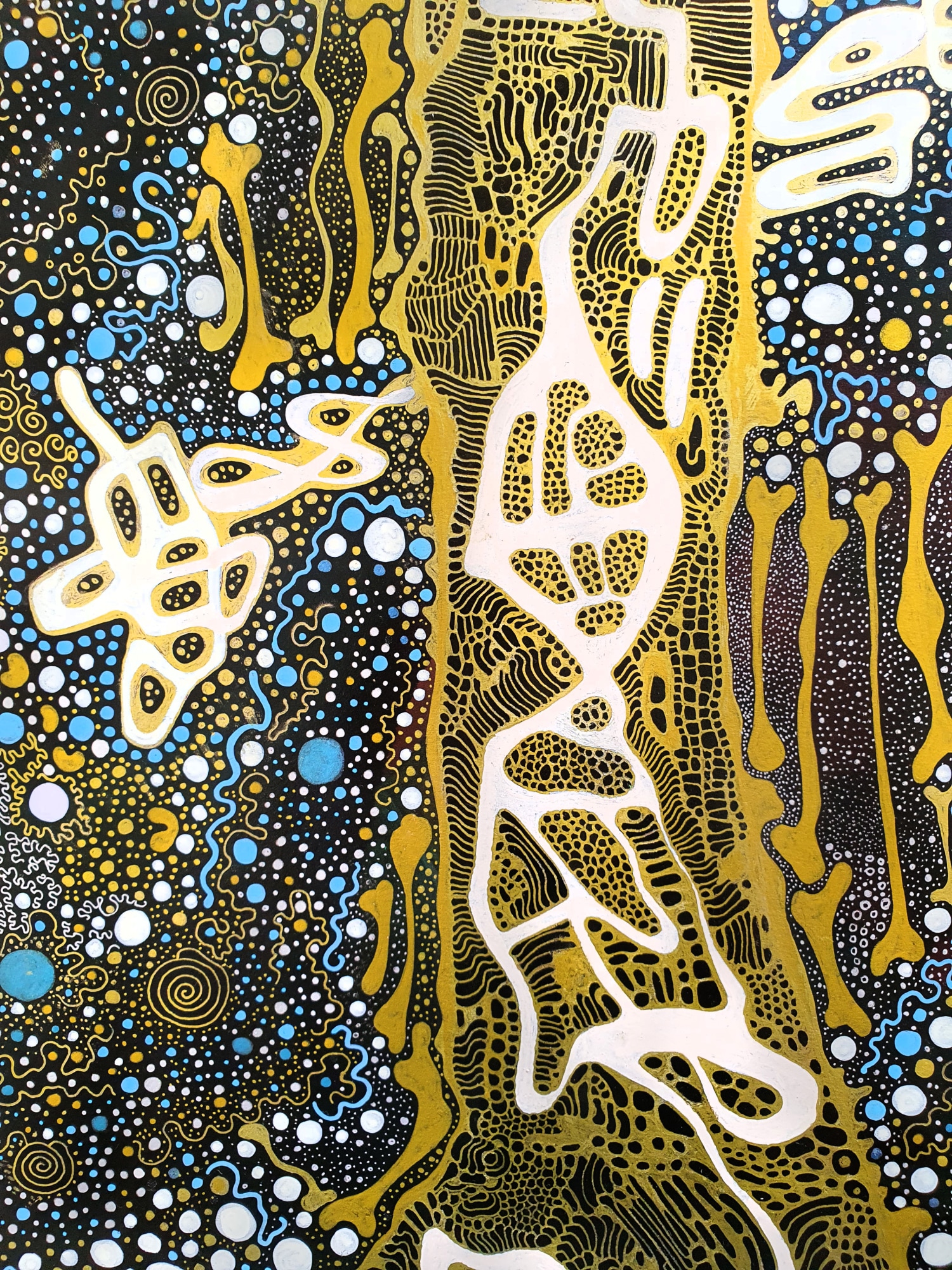 Hand-made work acrylics, china ink, pigment liners, metallic pens on board