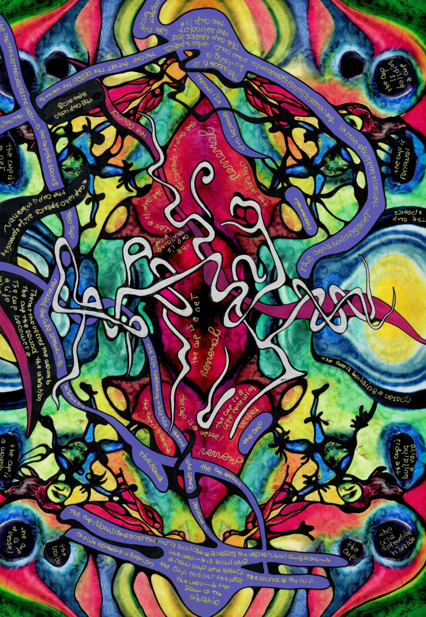Work in 4 parts [hand-written text on fine art print of "The cup is renewing us" cut in 4 pieces]
