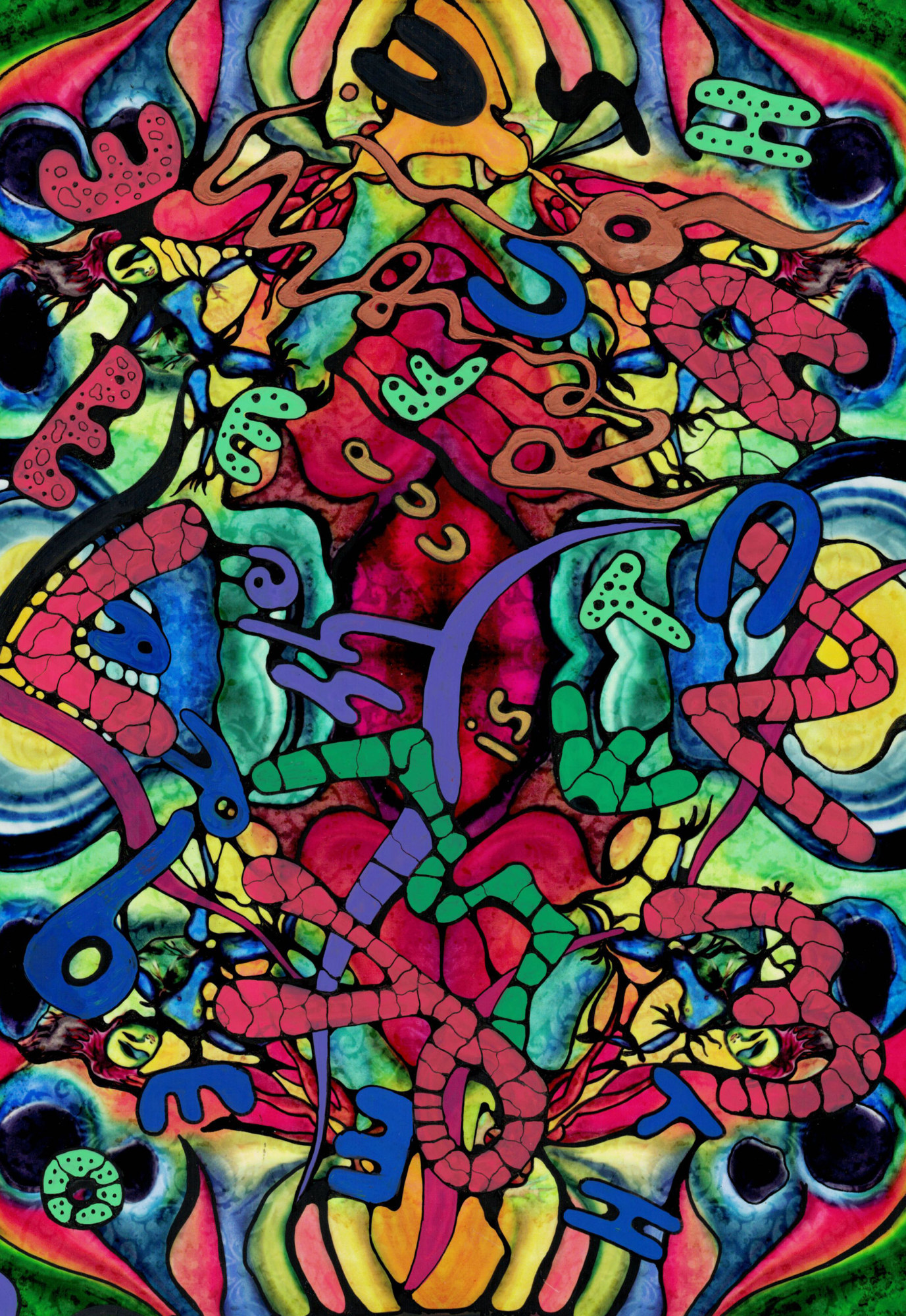 Work in 4 parts [hand-written text on fine art print of "The cup is renewing us" cut in 4 pieces]