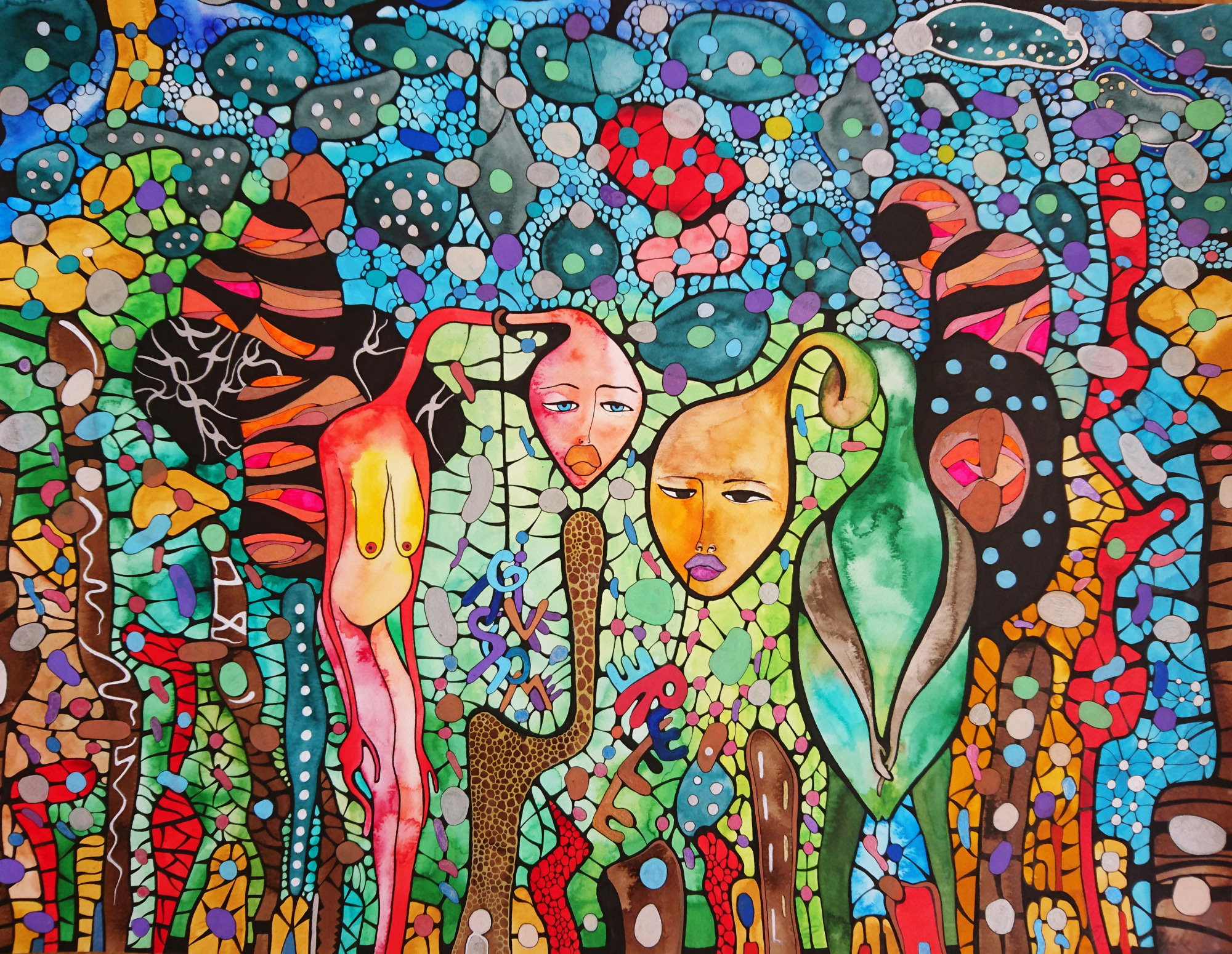 Water colors, metallic pens, Rapidograph