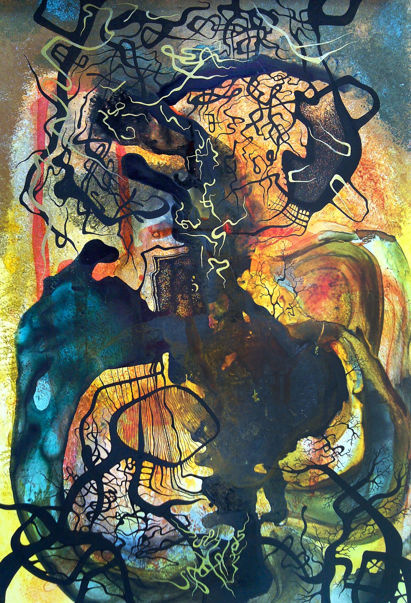 Hand-made drawing Water colors, China ink, metallic pens, Rapidograph