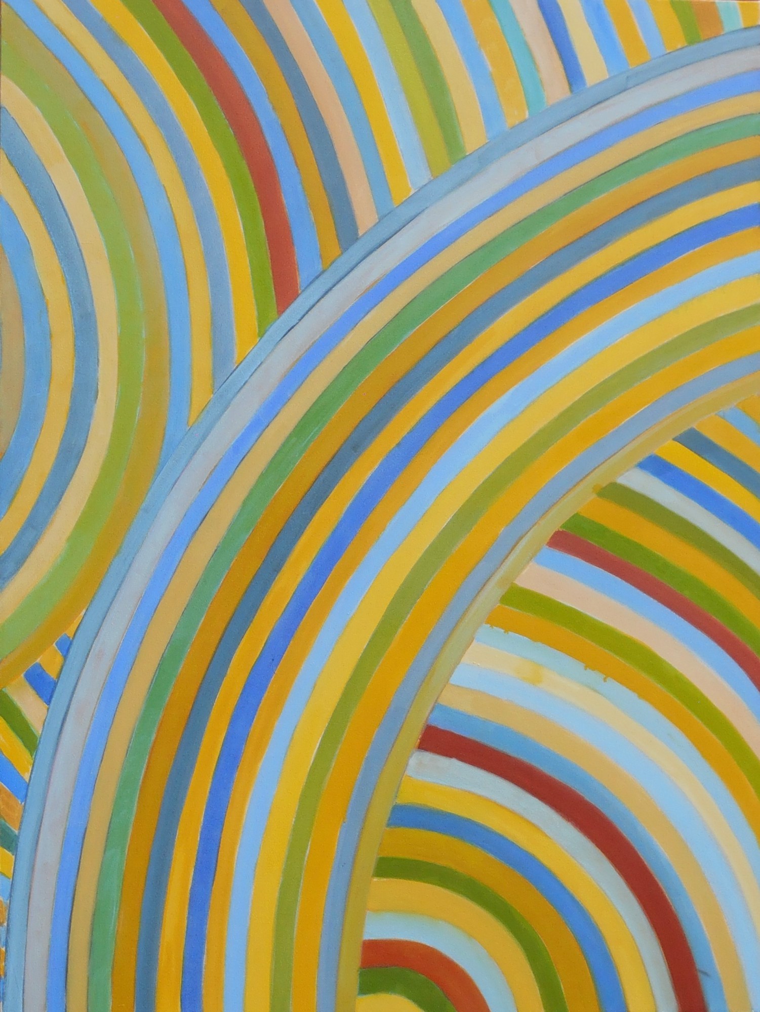 A continuation of the arc series. The colors went in a different direction than what I had envisioned. It works. The arc paintings are about finding new color combinations. An orchestration of colors. Sometimes a few colors, sometimes more. From one to six coats. Each coat is a glaze, and changes the color a little - or a lot. Each coat is a step toward harmony.