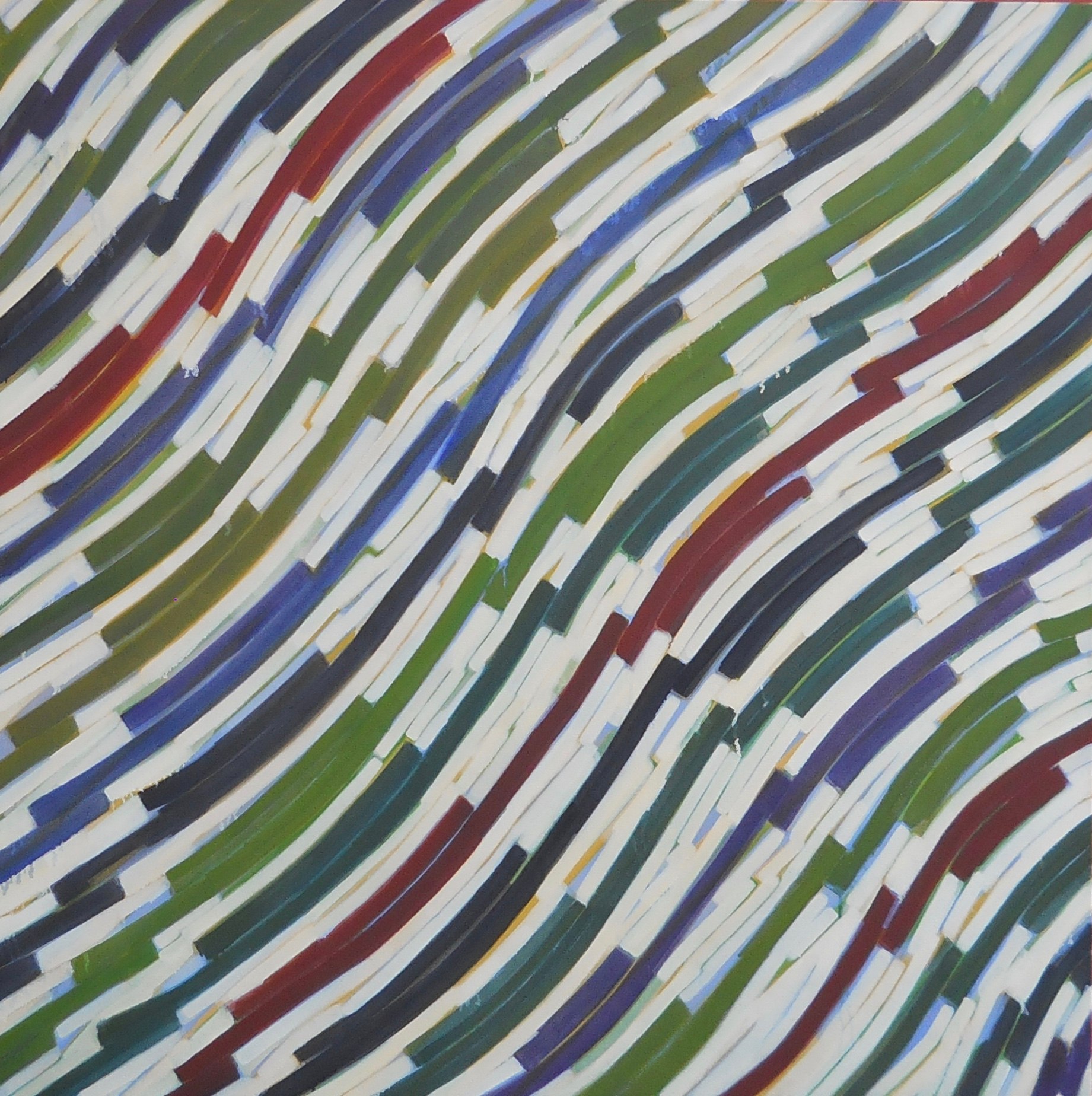 Working with cool, dark greens and blues, with cool tans. Lots of events in the white "ground."