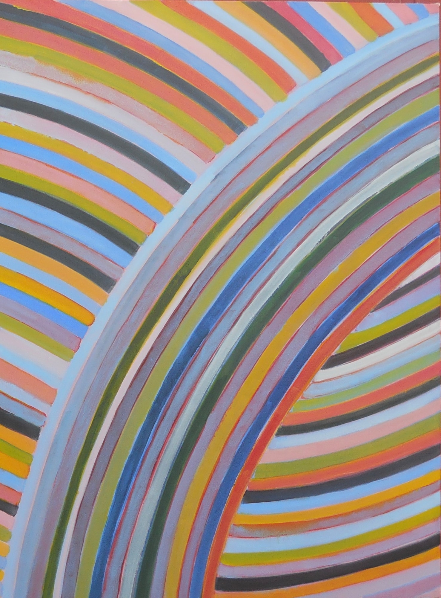The arc paintings are about finding new color combinations. An orchestration of colors. Sometimes a few colors, sometimes more. From one to six coats. Each coat is a glaze, and changes the color a little - or a lot. Each coat is a step toward harmony.