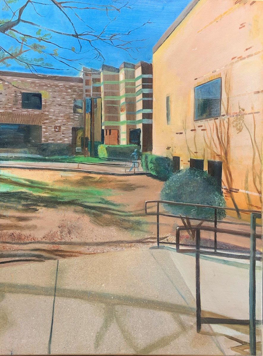 I made this from a picture I took at Dallas College. Don't you think it reminds you of a place where you can mind your own business and take photos without a care in the world, and that instant, mysterious things happen and the peace ends, leaving nothing but a vague mystery?