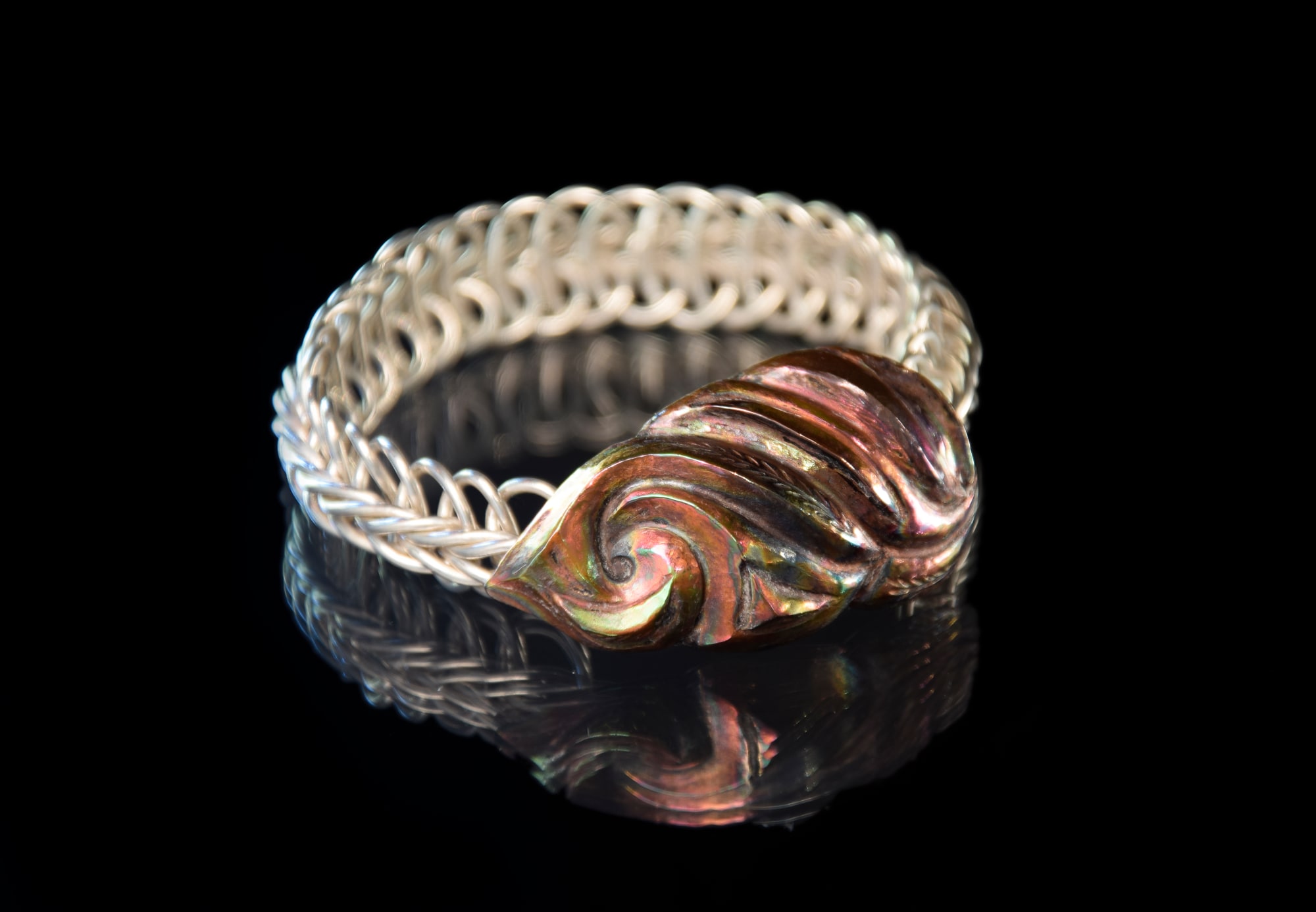 Original pattern Verterate bracelet, featuring a clasp of Eastern repousse