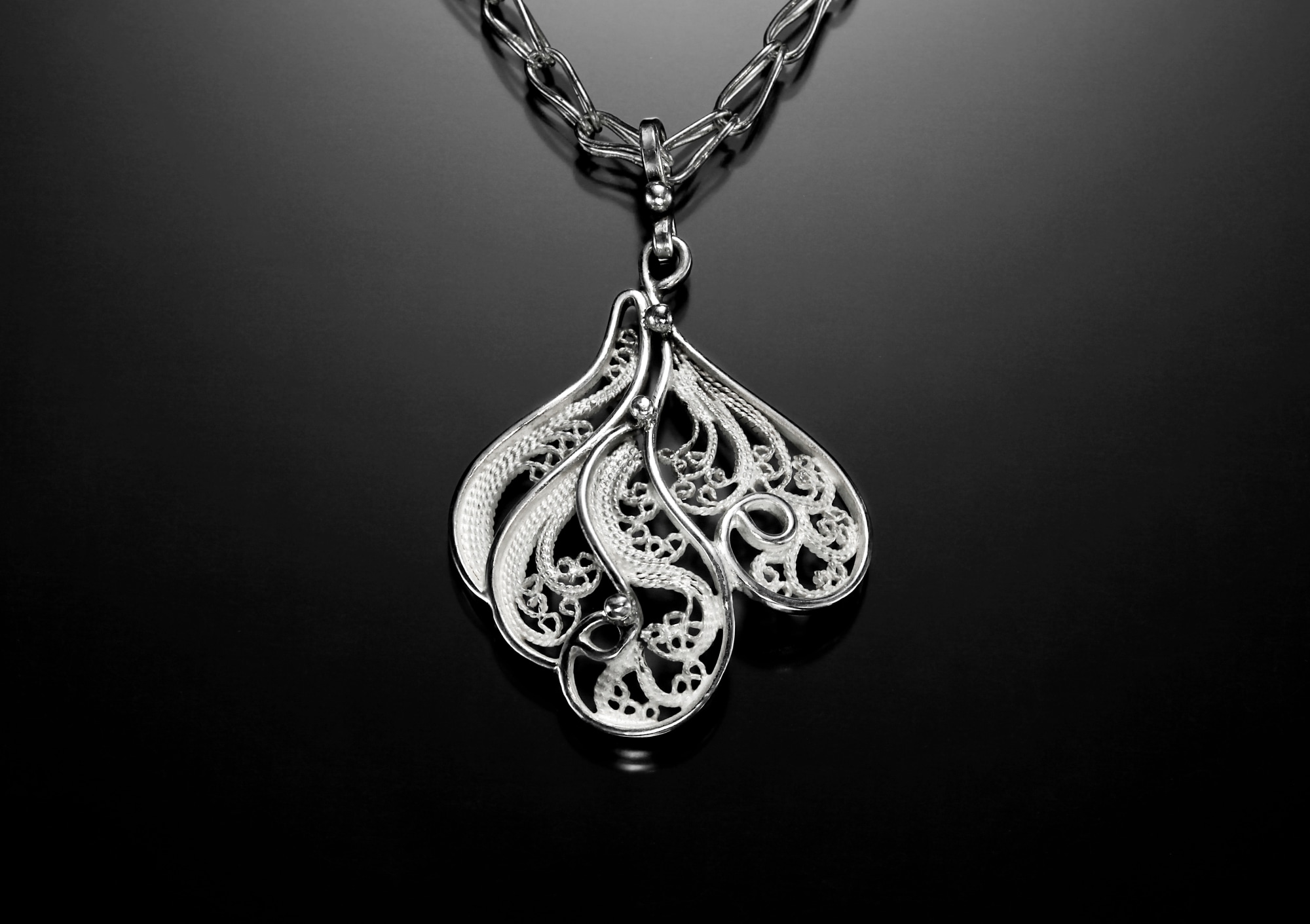 Russian Filigree pendant Sterling, fine silver