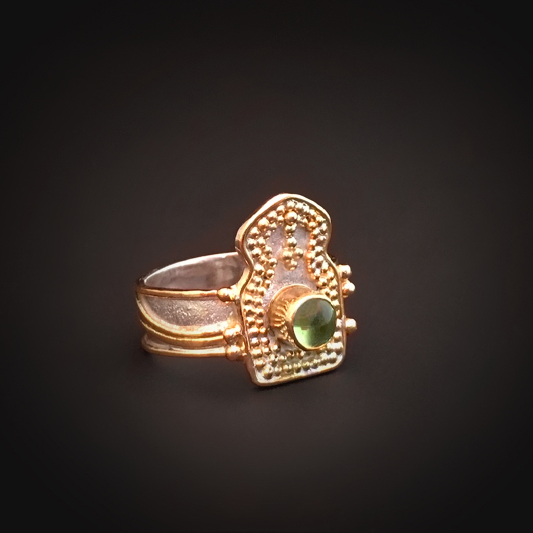 Granulation Ring 18k, 22k gold, sterling, peridot
