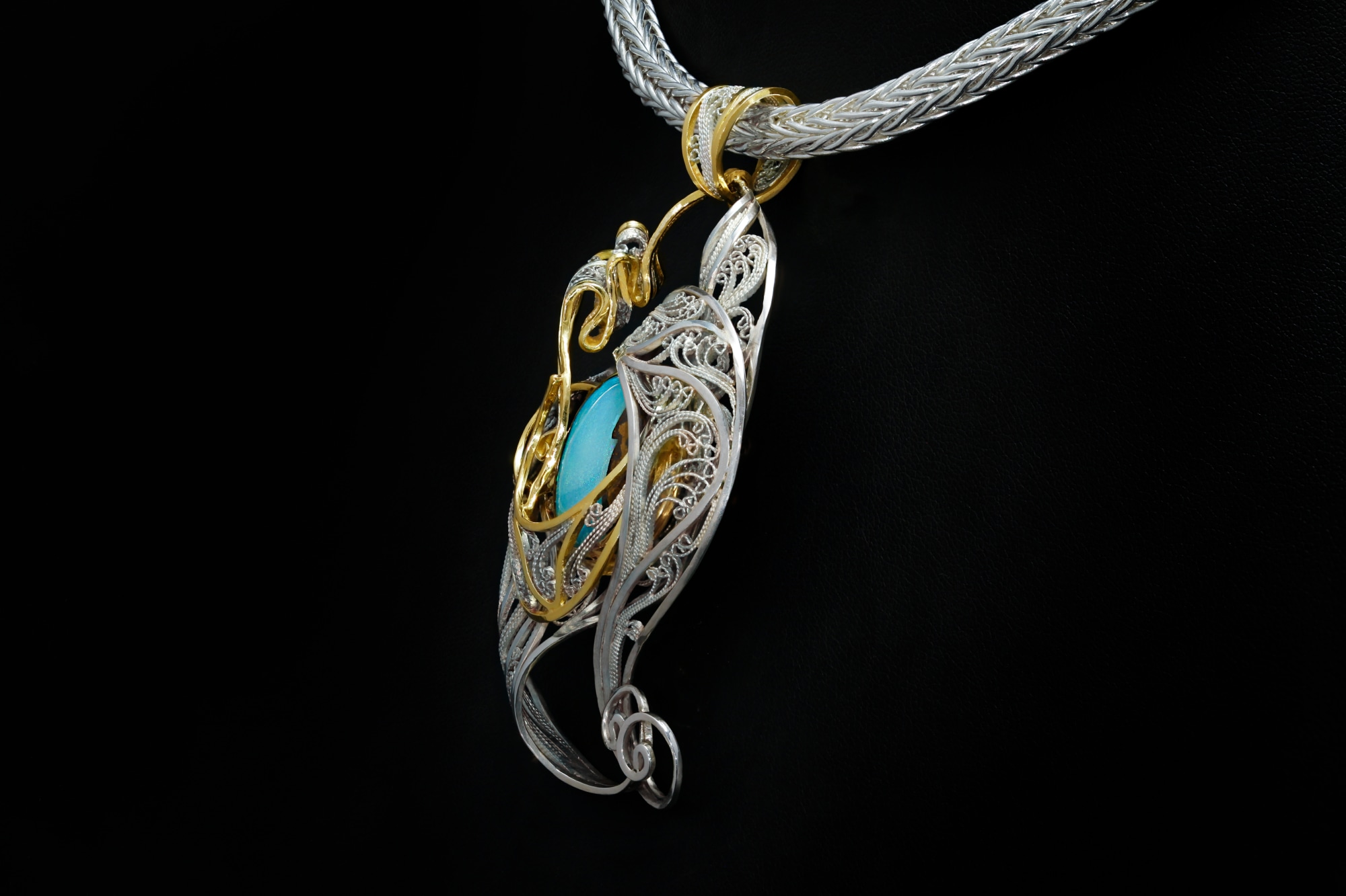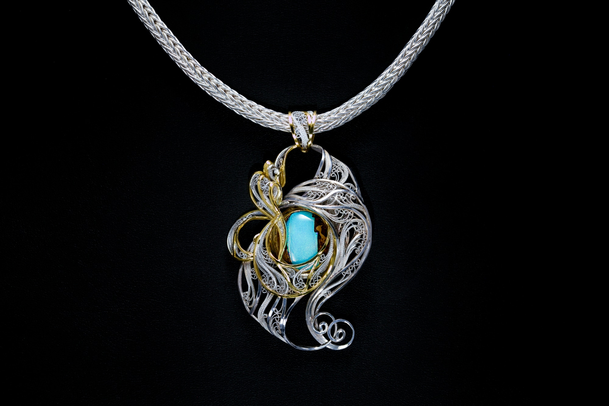 Russian filigree pendant on a 20 in. 2-direction double-weave chain