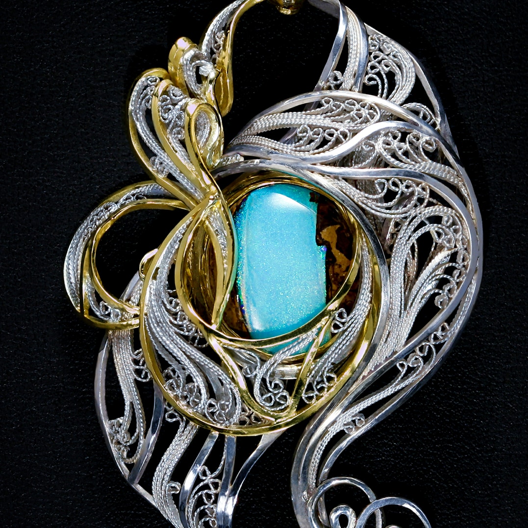 My work ranges from art jewelry and hand illuminated artist books to sculptural metal installations for one of the world’s largest super yachts.