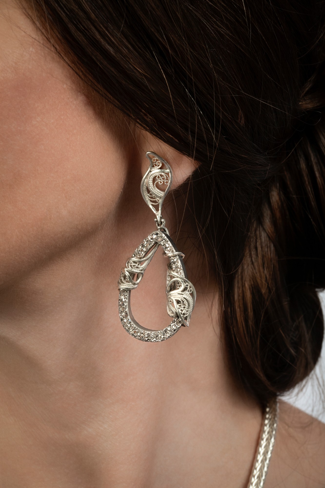 Russian filigree wrapped around drusies, earrings (post)