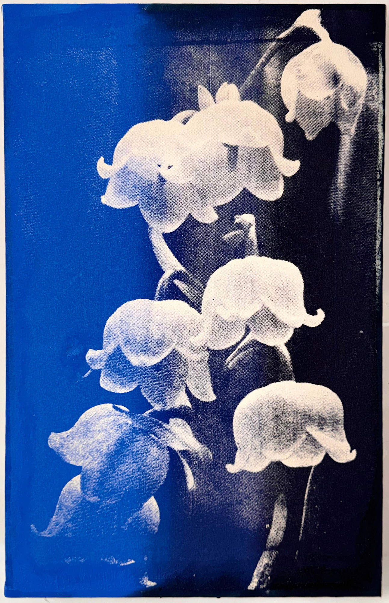 “Valley Variance” created in 2024, is a four-layer silkscreen featuring dark blue flowers