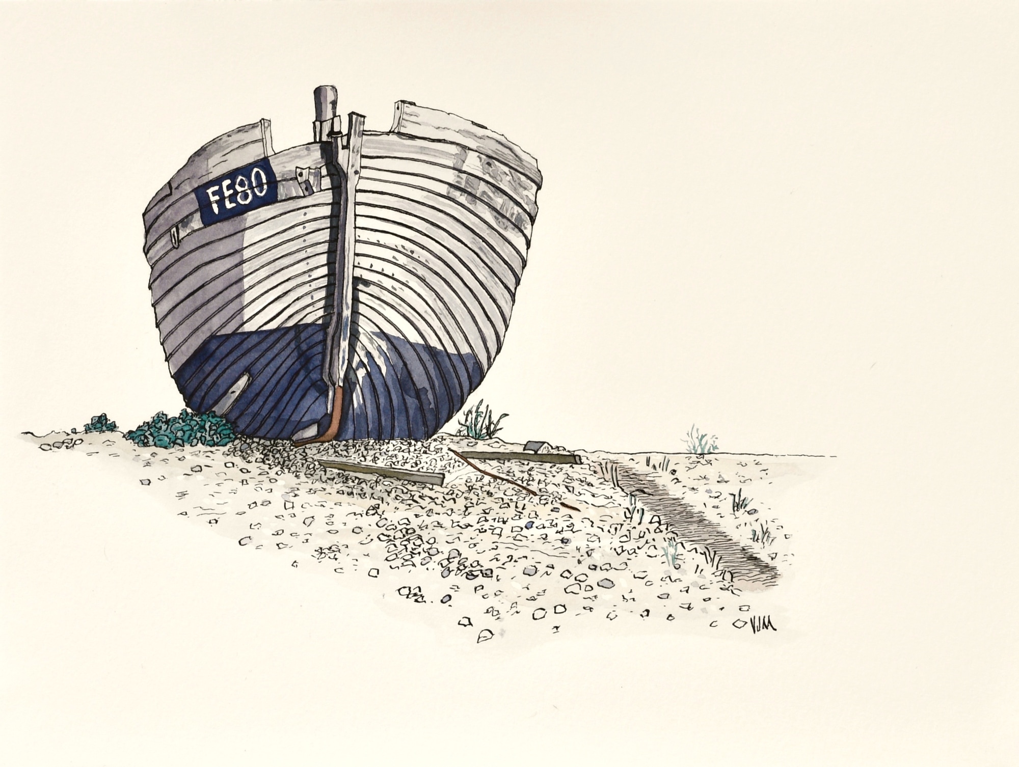 Indian ink & watercolour