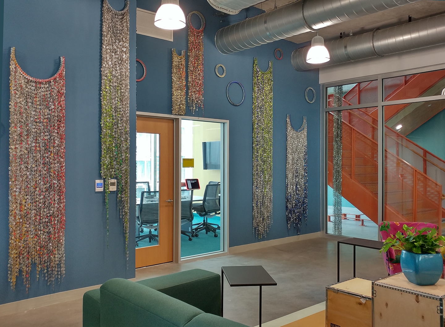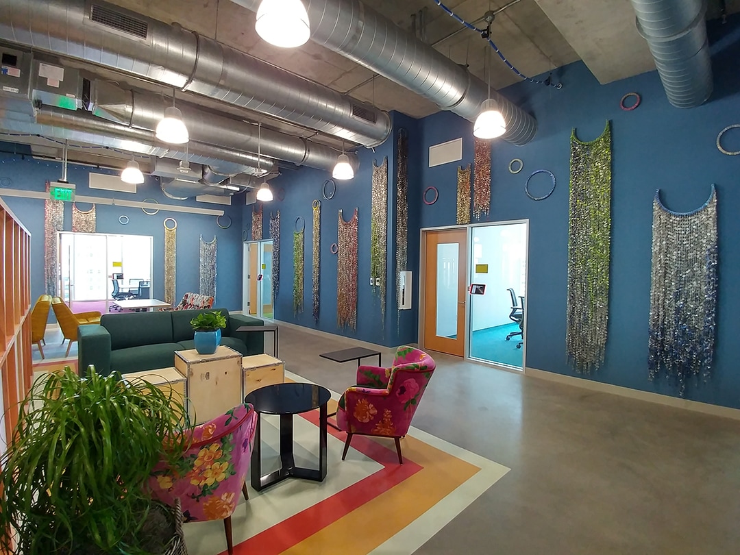 installation covering all the available walls at a Facebook facility with long layered chains