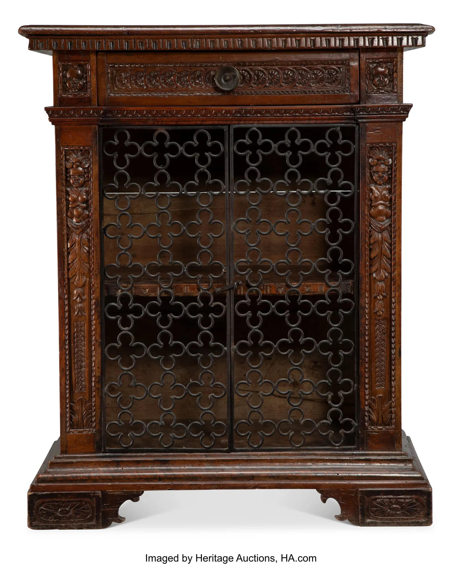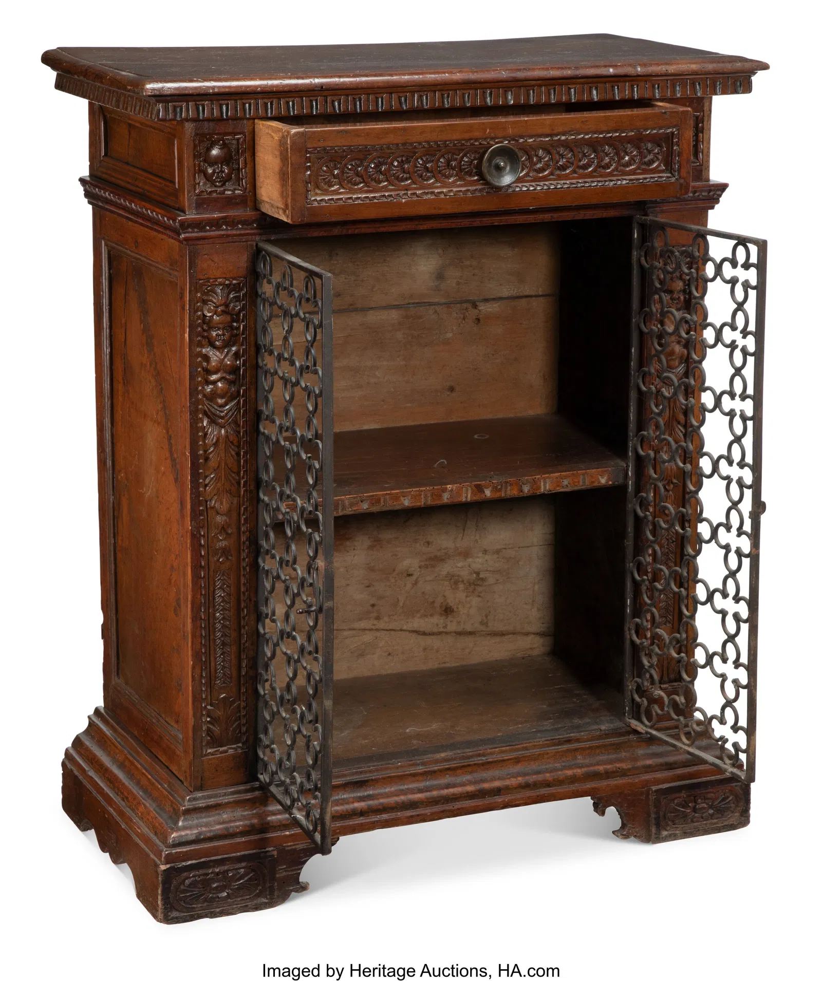 18th Century Italian Carved Walnut Grill Front Cabinet