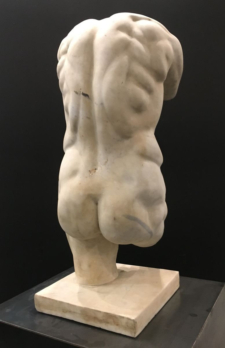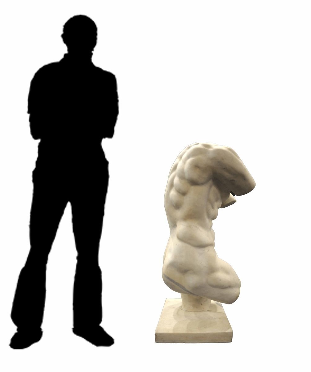 A marble sculpture of a headless, armless and legless man supported on one leg whose identity is unknown. The contorted pose and musculature of this style torso were highly influential on Renaissance, Mannerist, and Baroque artists, including Michelangelo and Raphael, and often served as a catalyst of the classical revival.