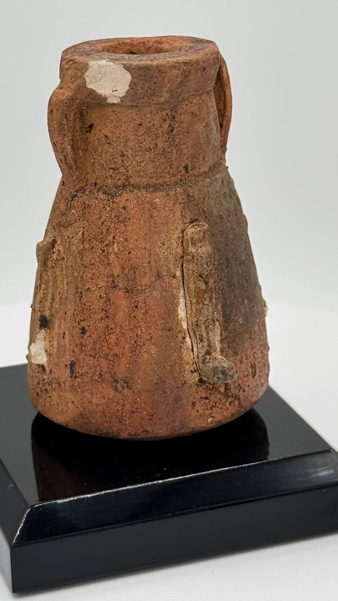A diminutive Egyptian vessel with two handles and Pharos amulets around the body
